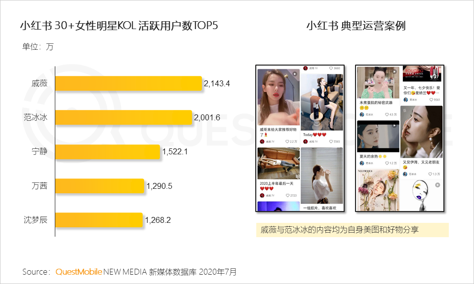 5、种草导购模式:30+女性明星KOL通过社交平台的内容推荐产品,为粉丝种草,其中微博与小红书的转化率较高