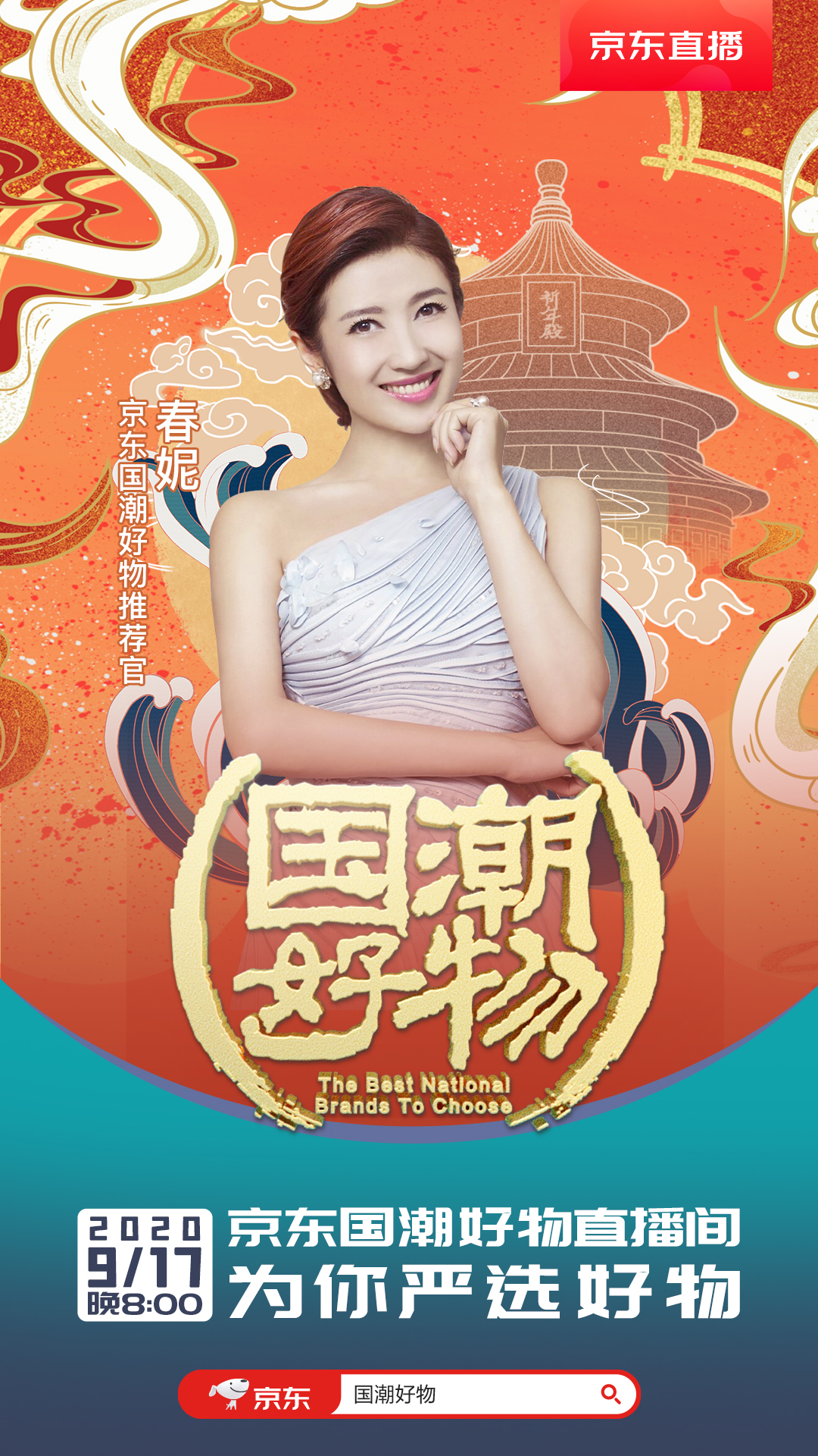9月17日晚8点来京东国潮好物直播间,春妮将现场分享超多品牌福利,更有国潮好礼,免费赢取,与春妮一起为国潮好物点赞吧!