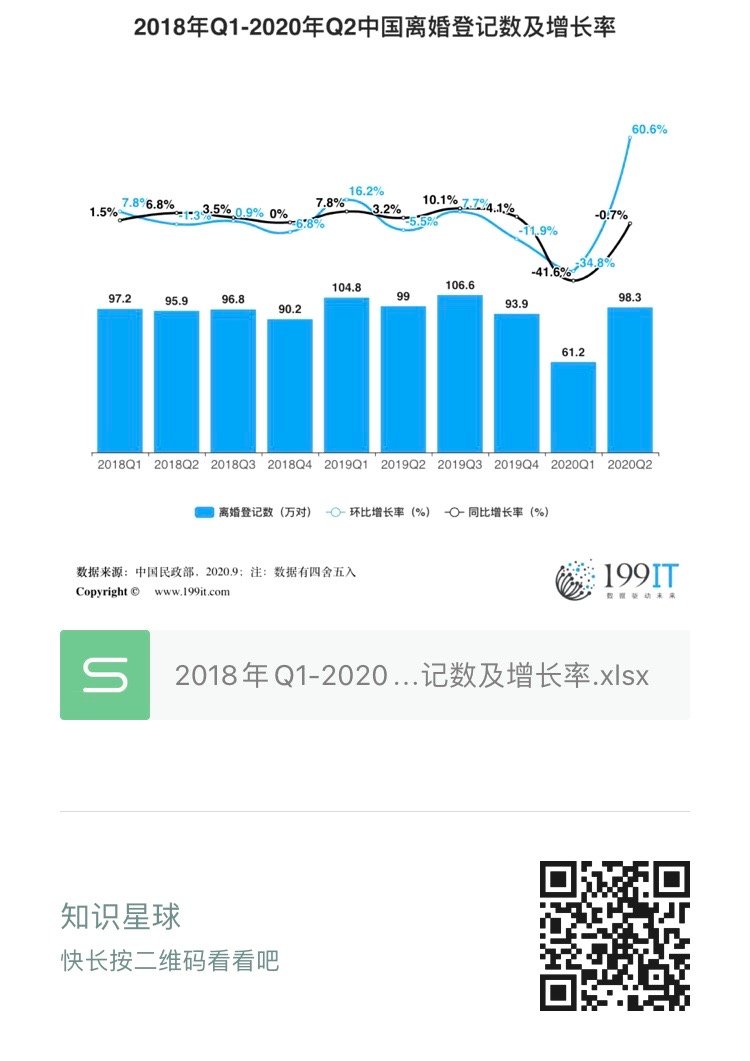 - 2019年Q3-2021年Q4中国离婚登记数及增长率(附原数据表)