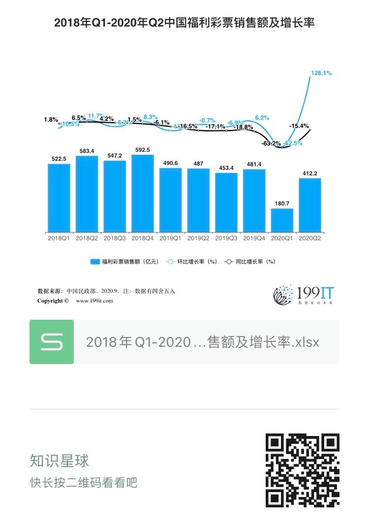 2018年Q1-2020年Q2中国福利彩票销售额及增长率(附原数据表) ​​​​