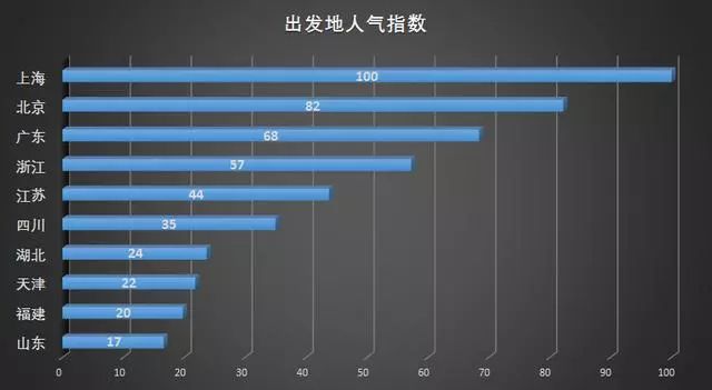 根据携程定制旅行平台数据显示,截至2018年上半年,企业团建前十出发地为上海、北京、广东、浙江、江苏、四川、湖北、天津、福建、山东。其中上海是最大客源地,企业定制会选在易到达的江浙周边城市。这一点在上半年目的地的数据中也得到了体现。