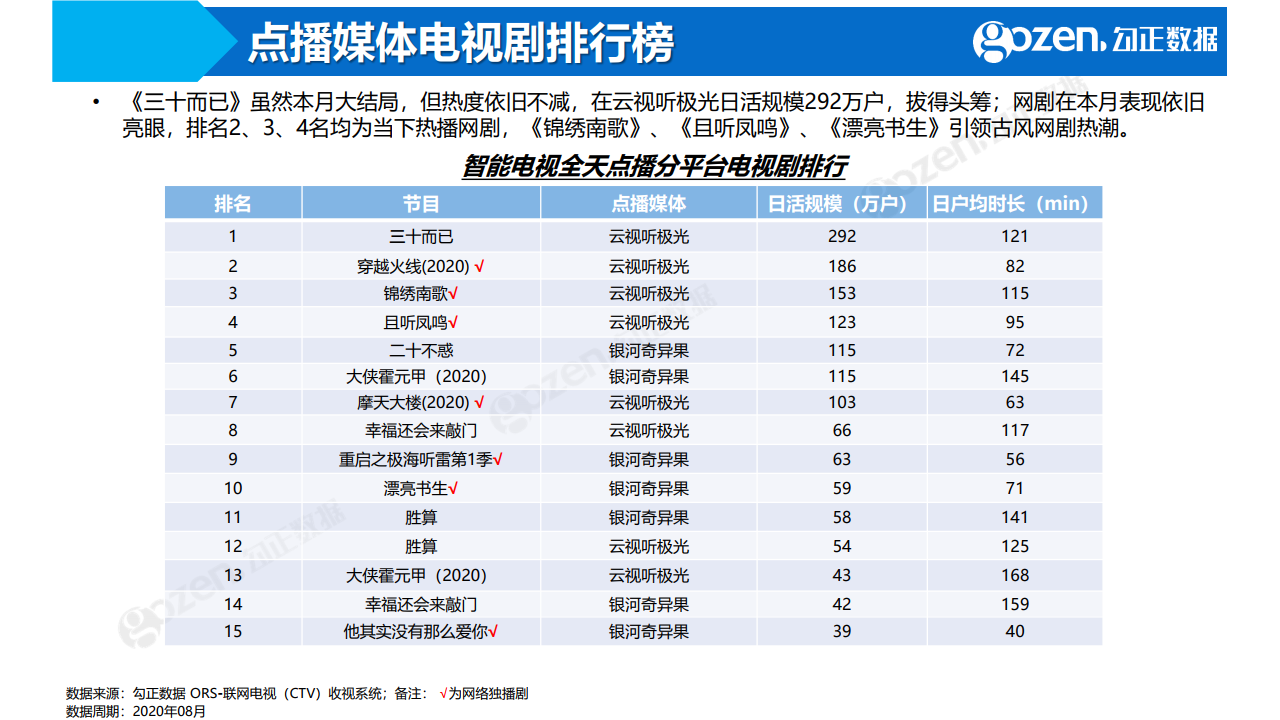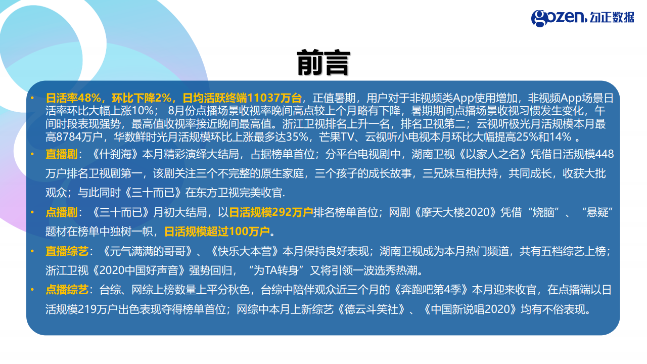 勾正数据:2020年8月智能电视大数据月度报告 PDF版本将分享到199IT知识星球,扫描下面二维码即可! 更多阅读:勾正数据:2019年5月智能电视大数据报告勾正数据:2017年上半年智能电视大数据报告勾正数据:2019年4月智能电视大数据报告勾正数据:2020年7月智能电视大数据报告勾正数据:2017年8月智能电视大数据报告勾正数据:2018年5月智能电视大数据报告勾正数据:2019年8月5-11日智能电视大数据周报勾正数据:2020智慧屏行业发展白皮书勾正数据:2020上半年智慧屏行业发展白皮书勾正数据:2019上半年家庭智能大屏产业生态报告勾正数据:2018年Q1大屏洞察报告勾正数据:2017年OTT行业发展报告勾正数据&当贝网络:2017年10月OTT行业报告勾正数据:2023年5月IPTV数据月度报告勾正数据:2019上半年家庭智能大屏产业生态报告