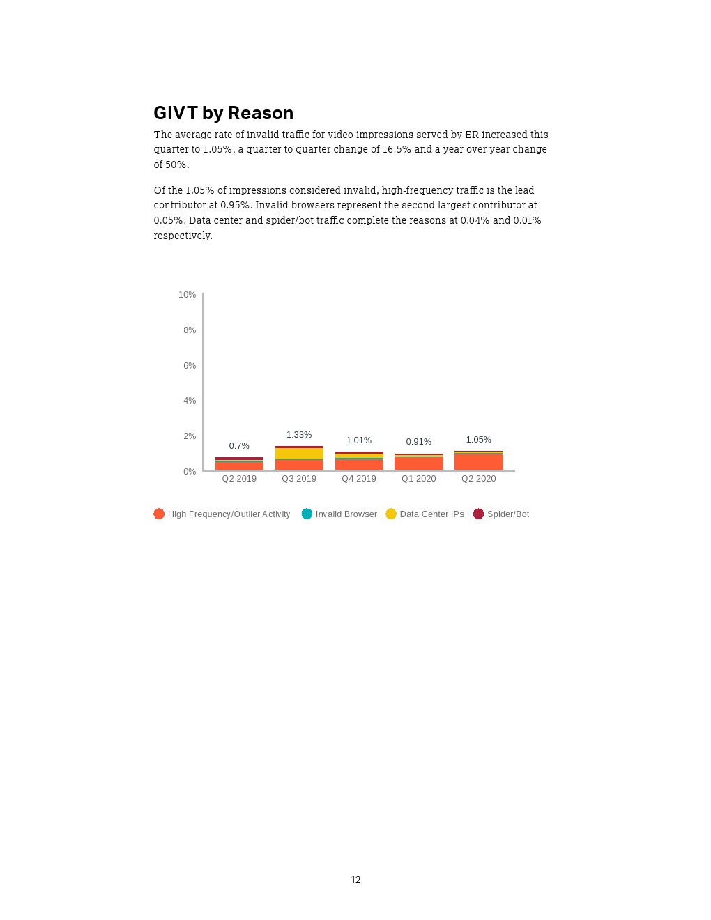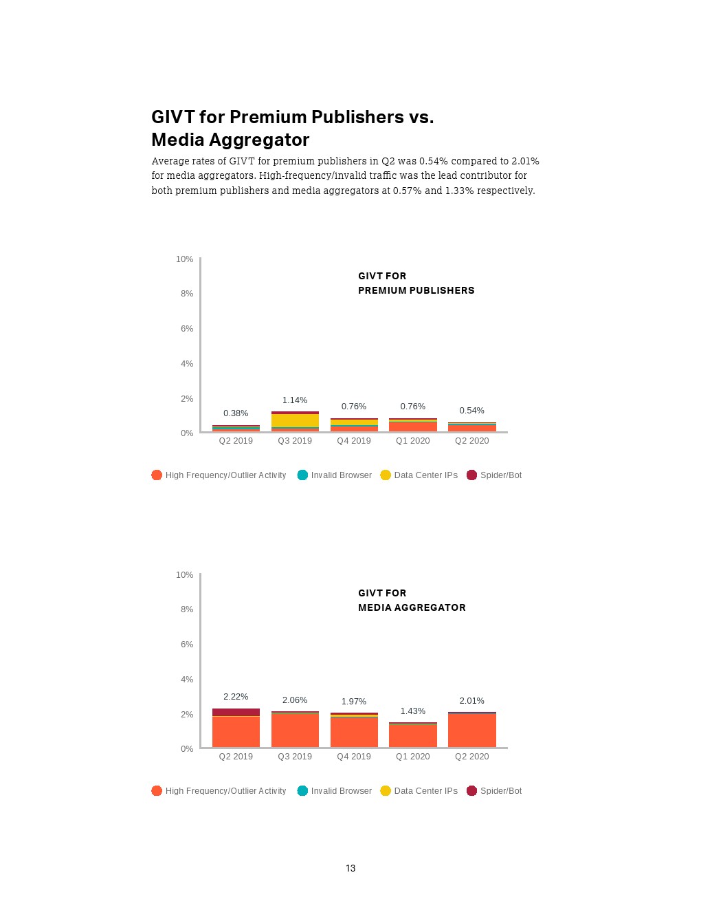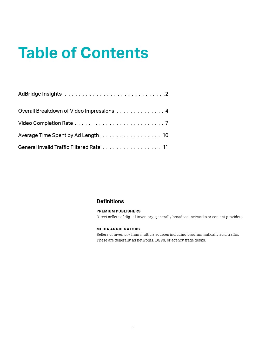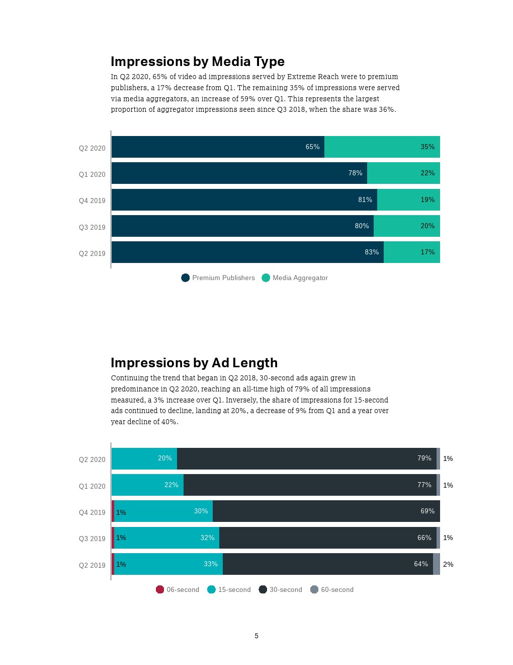 - 高端发布商,即数字库存直销商,在今年第二季度的视频广告展现量中占大多数(65%),如广播网络或内容提供商;而媒体聚合器占35%。