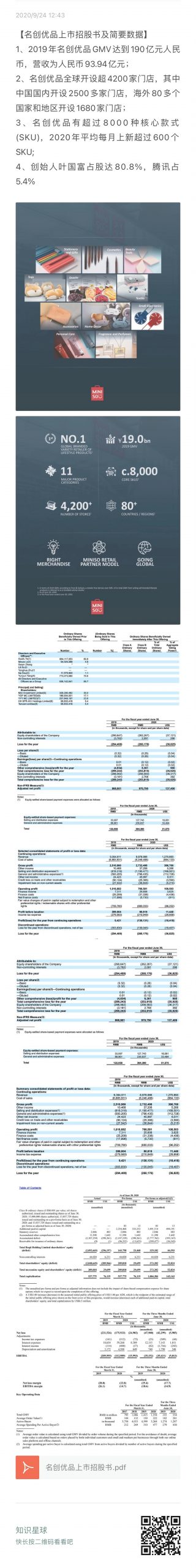 名创优品上市招股书及简要数据 1、2019年名创优品GMV达到190亿元人民币,营收为人民币93.94亿元; 2、名创优品全球开设超4200家门店,其中中国国内开设2500多家门店,海外80多个国家和地区开设1680家门店; 3、名创优品有超过8000种核心款式(SKU),2020年平均每月上新超过600个SKU; 4、创始人叶国富占股达80.8%,腾讯占5.4% 更多阅读:奈雪的茶IPO上市招股书及简要数据名创优品:2Q21营收为人民币22.98亿元 净利润环比增长约70%名创优品财报:2022年Q1名创优品国内营收18.2亿元 同比增长17.4%慧择保险上市IPO招股书及简要数据陆金所上市招股书及简要数据2020年网易香港上市招股书及简要数据波奇宠物上市招股书及简要数据 蚂蚁集团上市招股书及简要数据UBER上市招股书及简要数据汇总名创优品财报:2025年Q1营收44.27亿元 净利润降4.8%EnergyPolicyTracker:G20国家承诺投资5768.2亿美元支持能源发展拼多多:现金储备411亿 黄峥为大股东腾讯持股近17%蔚来:4Q19财报电话会议分析 销量上升为何亏损却更严重教科书的典范:瑞幸咖啡曾经是怎么向投资者吹牛的宁德时代:2019年净利润超45亿元 动力电池产能逐渐释放