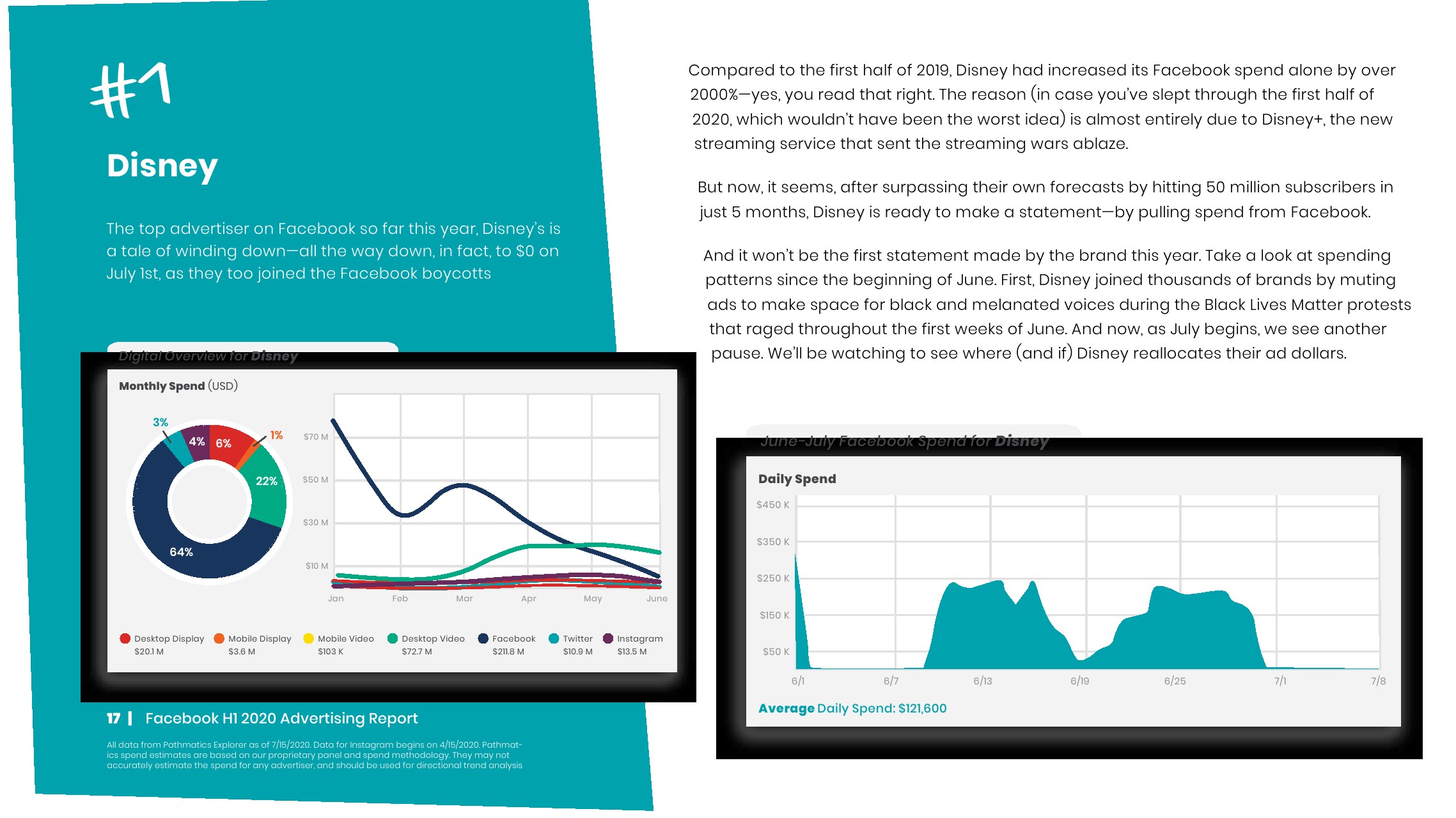 迪士尼今年上半年在Facebook上的广告支出估计为2.118亿美元,使其成为今年前两个季度Facebook最大的广告主。这是根据Pathmatics的最新数据得出的结论。