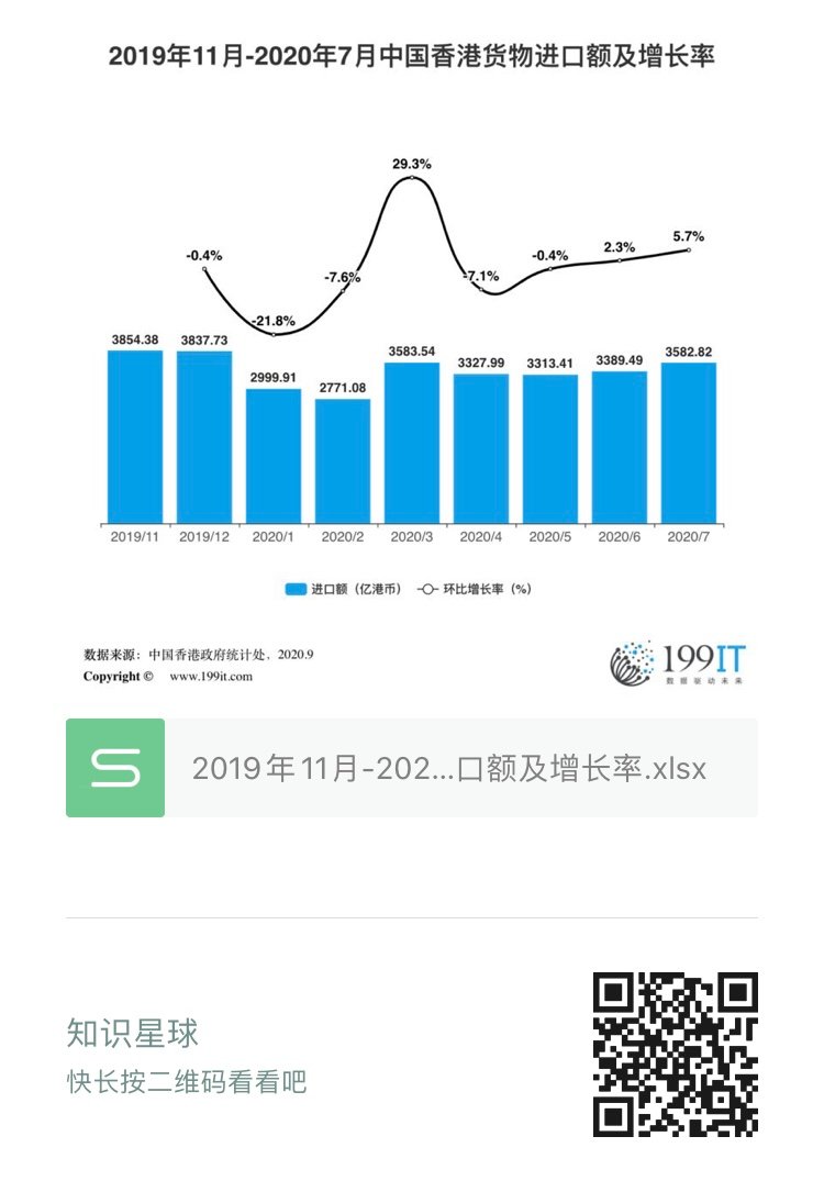 2019年11月-2020年7月中国香港货物进口额及增长率(附原数据表) ​​​​