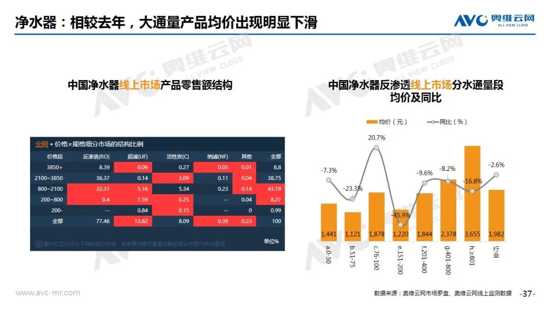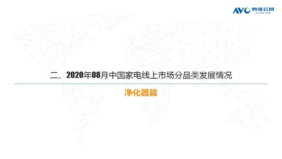 净化器:2020年8月份,净化器市场因疫情导致的应急增长回落引发的市场萧条现象逐渐消退,本月市场出现明显增长,据奥维云网(AVC)线上监测数据显示,8月份净化器线上市场规模3.1亿元,同比增长12.7%,销量20.6万台,同比增长17.5%。从监测数据分析情况来看,本周科沃斯通过直播市场占比大幅度增长,同时华为、格力等品牌份额增长同样明显,从这一点来看,净化器当前依然有一定的市场潜力,但在渠道资源收紧的情况下需要企业更为主动的接触消费者来拉升转化。