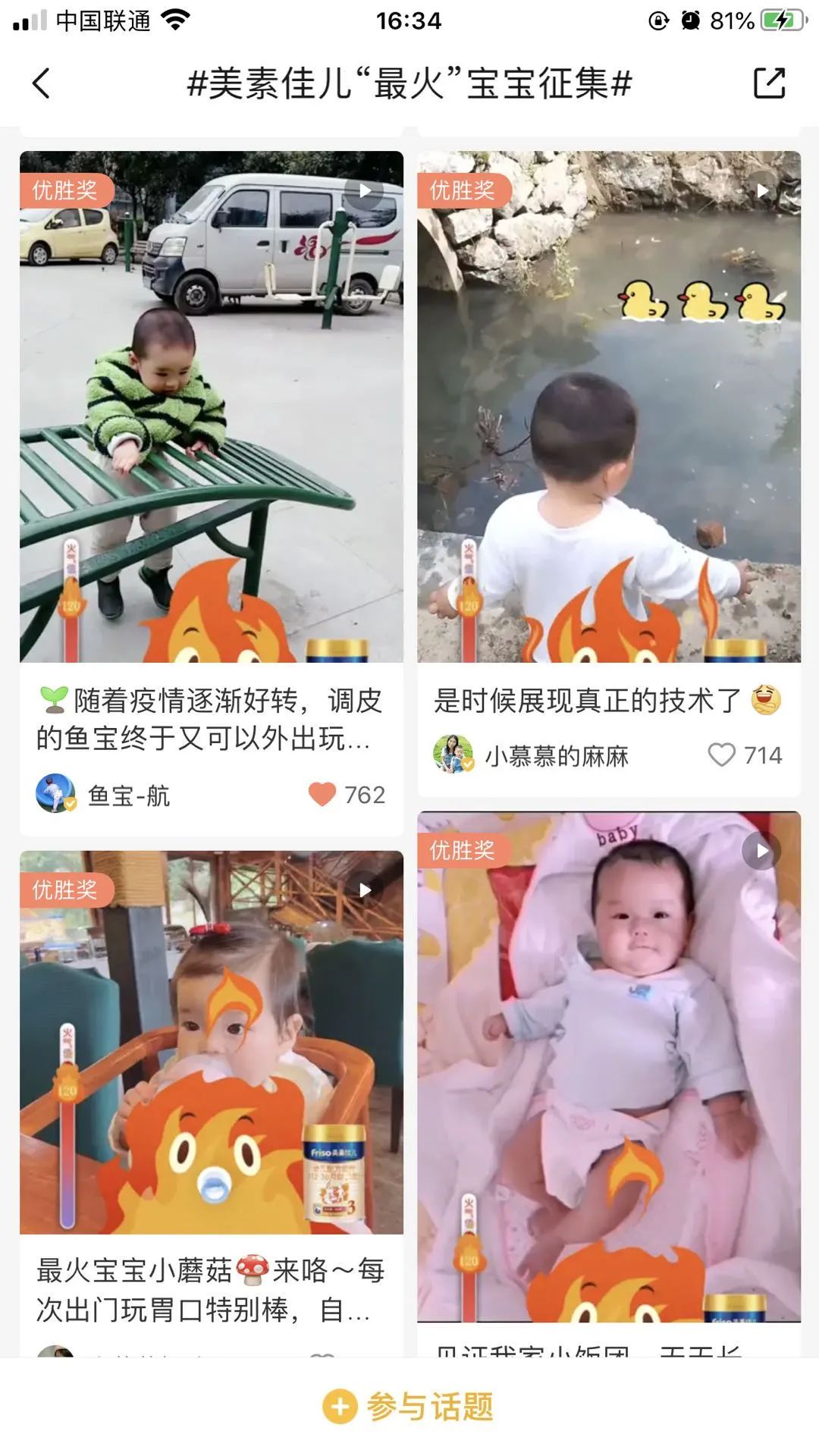 当然,挖掘痛点的同时若能结合创新互动玩法,就可以让品牌营销价值更上一层楼。头部婴幼儿奶粉品牌美素佳儿从产品核心出发,挖掘“妈妈因孩子易上火体质产生情感需求”这一痛点的同时,联合头部母婴垂媒发起“最火”宝宝视频互动赛,引爆话题,获得了近2亿的曝光。