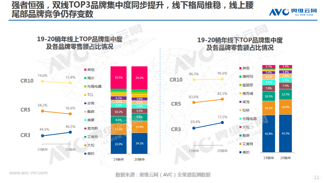 三、双线TOP3品牌集中度同步提升,线下格局维稳,线上腰尾部品牌竞争仍存变数