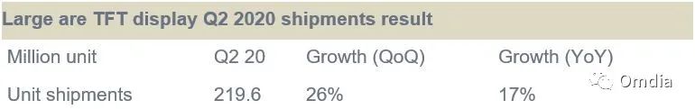 随着新冠疫情点燃的远程办公和在线教育的趋势,2020年第二季度IT应用的显示面板需求激增。由于IT显示面板需求持续强劲,加上品牌商及零售商对电视市场展望较佳,Omdia预估2020年第三季大尺寸面板出货量将环比增长3%,同比增长13%。