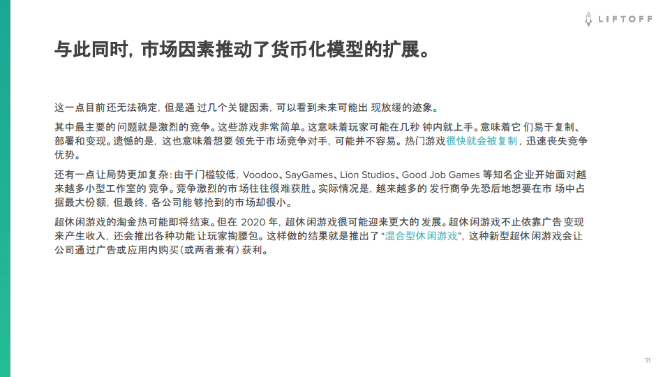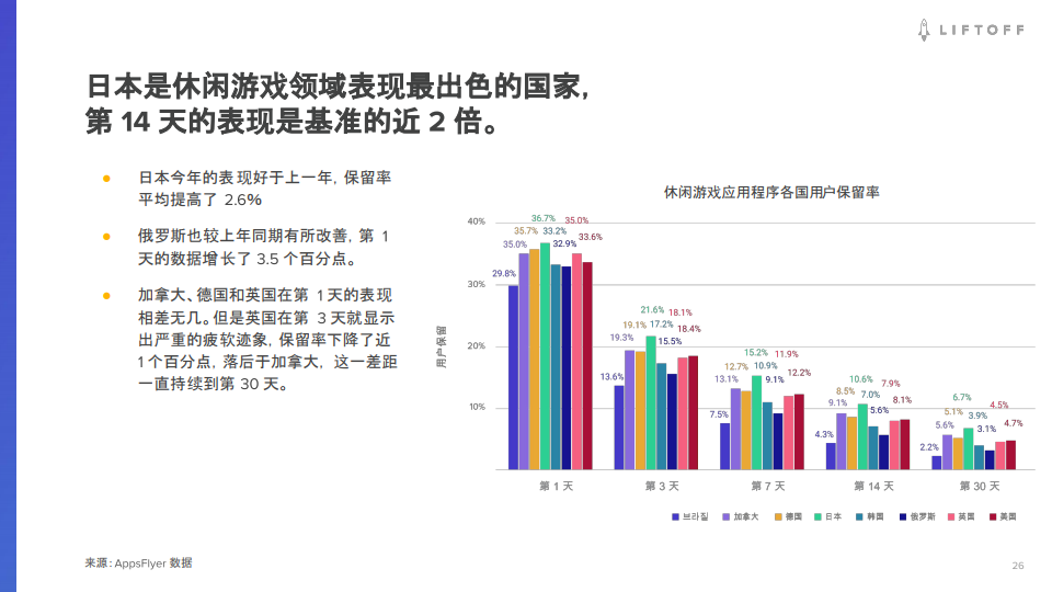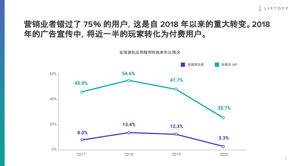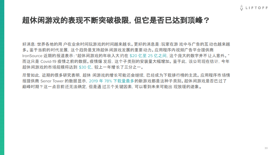 Liftoff首席执行官兼联合创始人Mark Ellis表示:“移动游戏比以往任何时期都更受欢迎,作为玩家在疫情期间的“避难所”,手机将继续成为人们娱乐的主要来源。移动营销人员应重新审视其用户交互策略,充分迎合新玩家的需求进而增加其粘性,而不是仅仅满足于安装诉求。”
