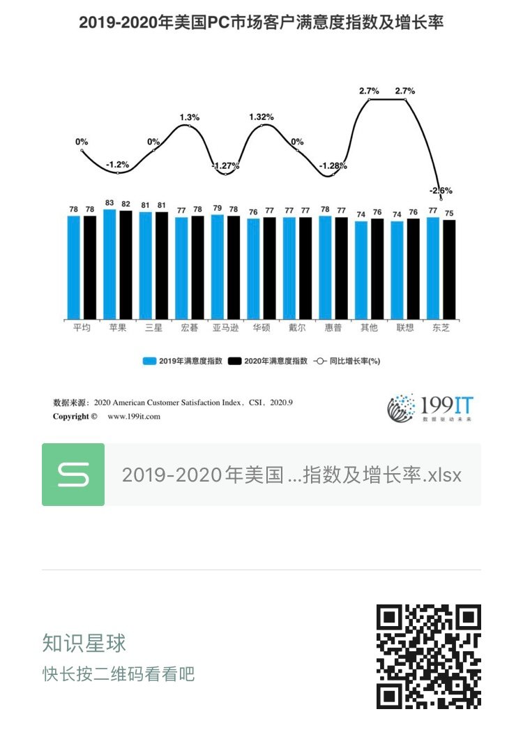 2019-2020年美国PC市场客户满意度指数及增长率(附原数据表) ​​​​