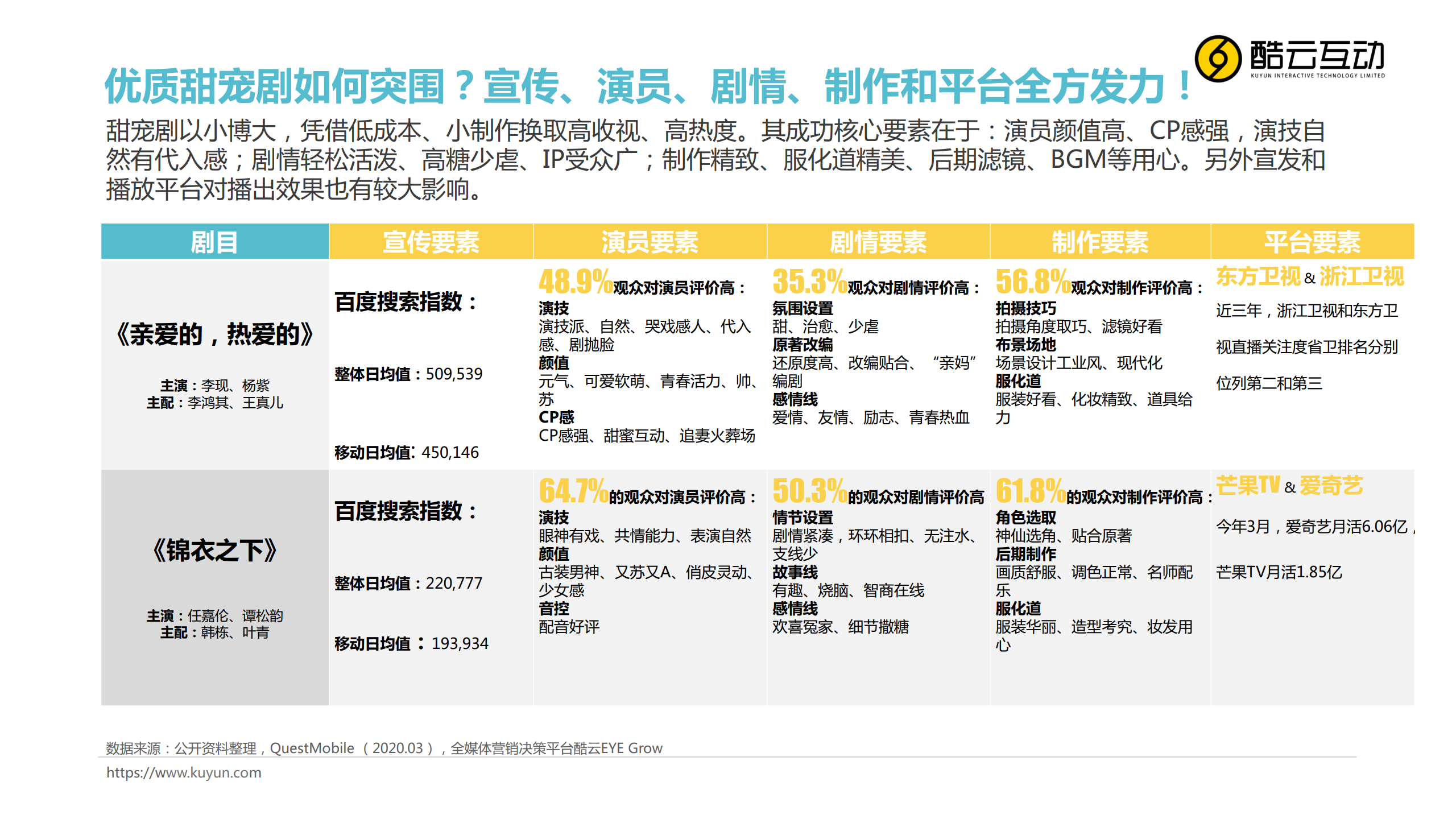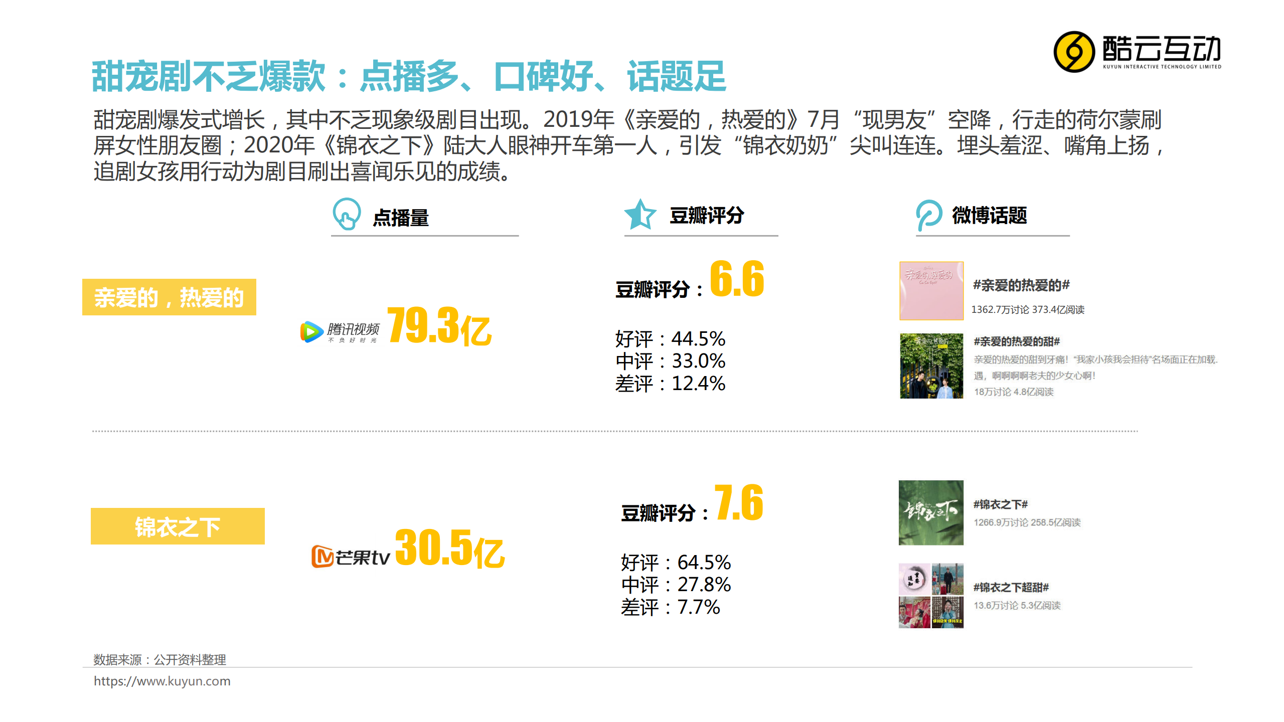 酷云互动:甜宠剧分析报告 PDF版本将分享到199IT知识星球,扫描下面二维码即可! 更多阅读:酷云互动:2020年1-4月明星影响力洞察报告酷云互动:70周年献礼剧洞察报告酷云互动:从现在到未来 大数据正在革新文娱产业酷云互动:2019年3月智能电视全场景月度风向标酷云互动:2020年7-8月智能电视全场景月度风向标酷云互动:泛北京电视用户行为指南酷云互动:关于电视,那些颠覆“三观”的认知报告酷云互动:消费主力人群电视大屏用户行为揭秘报告酷云互动:疫情下文娱行业自救指南酷云互动:用户大屏触媒洞察分析酷云互动&秒针:2019年12月-2020年1月智能电视广告投放月度风向标酷云互动:2019年3月智能电视广告投放月度风向标酷云互动:2020卫视春晚盘点报告酷云互动:2020中央广播电视总台春节联欢晚会关注表现报告酷云互动:疫情下的用户大屏触媒洞察分析报告(二)