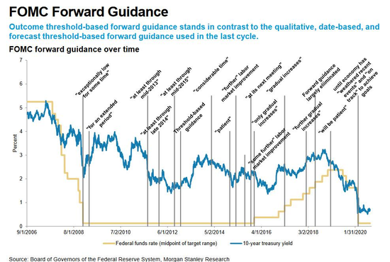坦率地说,市场其实不知道或不在乎美联储的观点。但现在美联储再度陷入困境,很可能即将启动收益率曲线控制、扩大量化宽松政策甚至对市场有更深远影响的指引。投资者有必要了解,美联储的历次指引带来了什么样的后果。