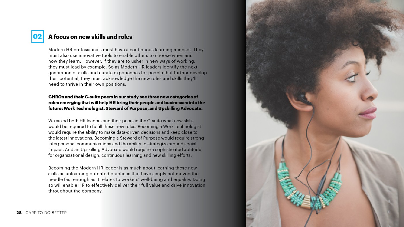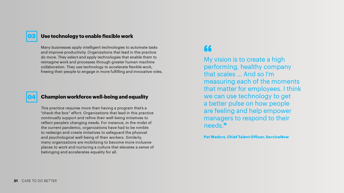 - 利用技术为日益分散的员工提供灵活的工作安排和更具创造性的工作。