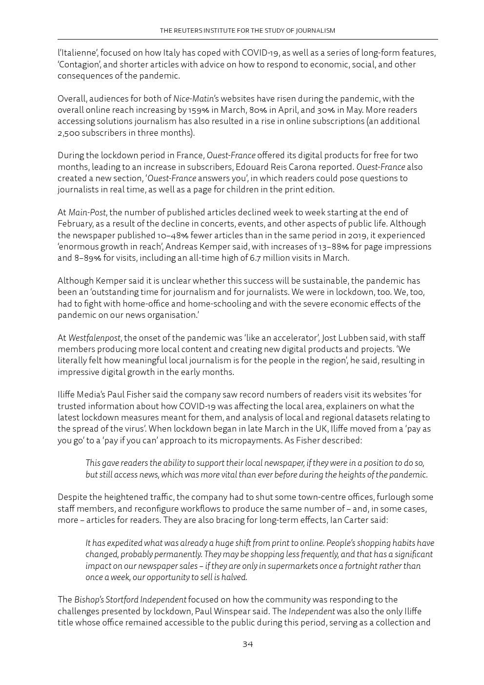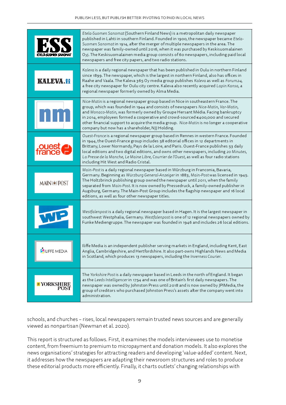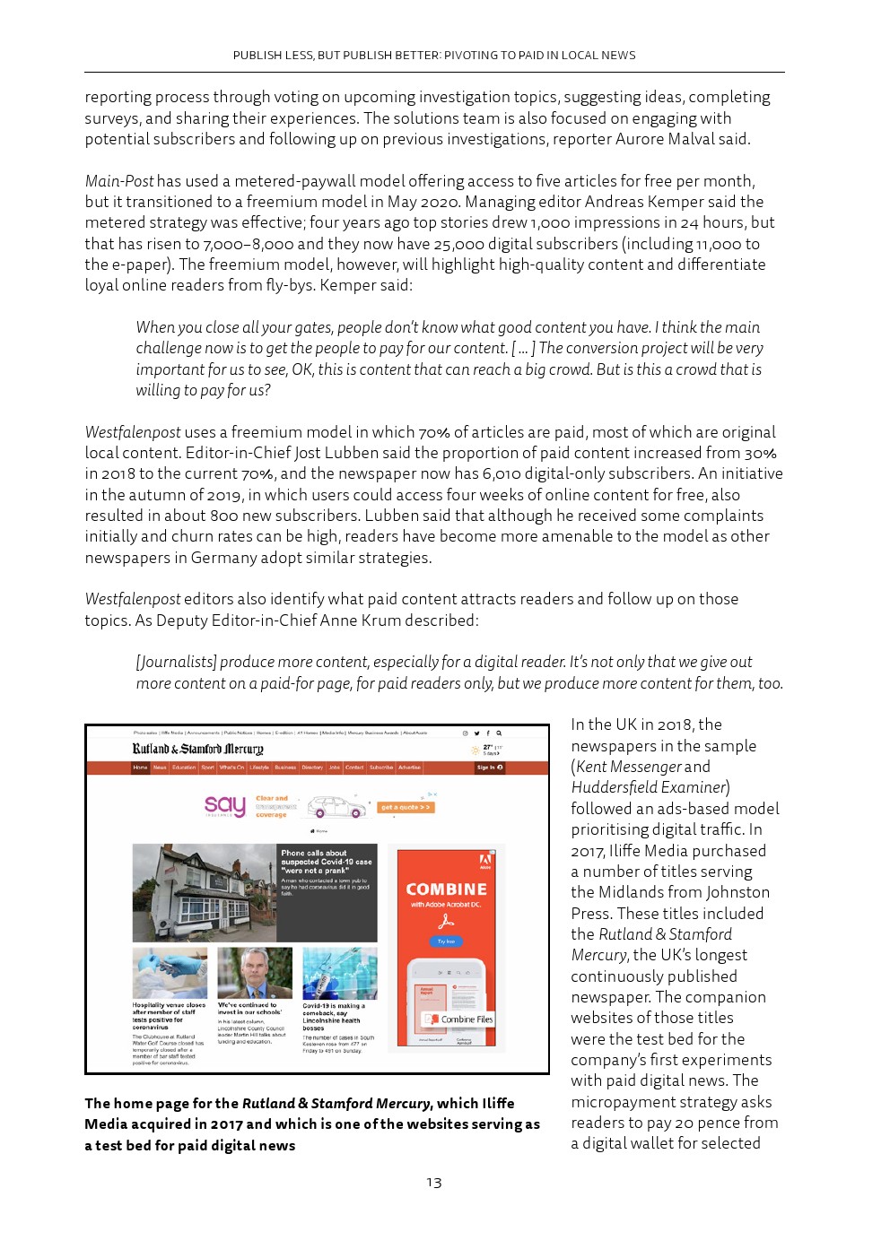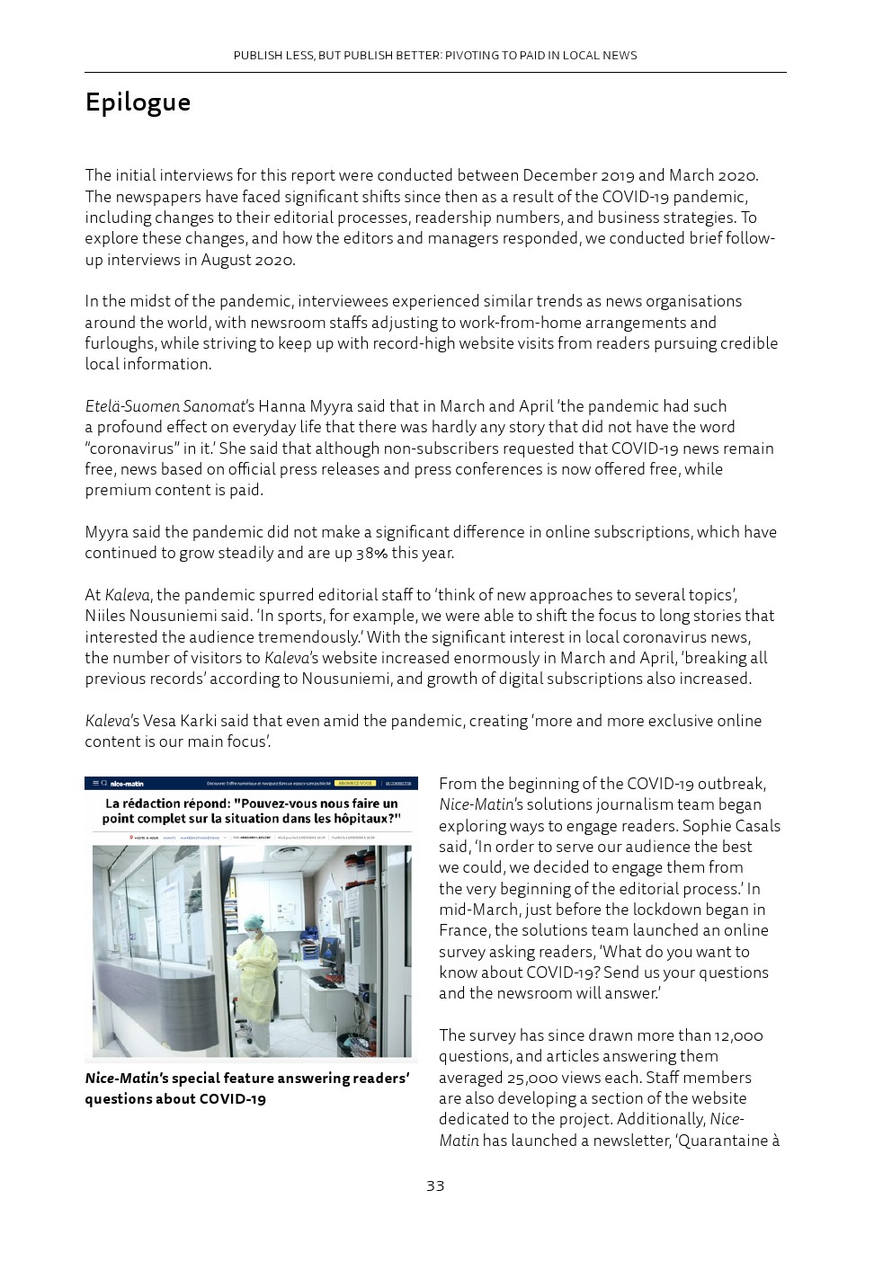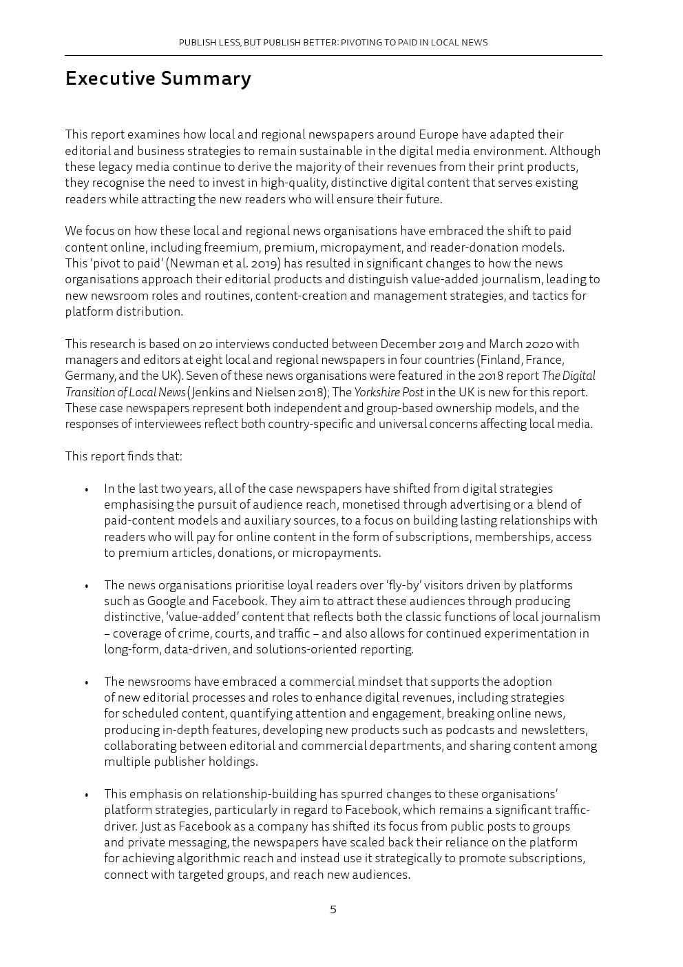 后续调查显示,新冠肺炎的出现加速了这些趋势。报纸代表仍然乐观,尽管编辑部的典型职能发生了剧变,但在纸质和网络广告收入下降后转向付费是一个合理的战略。