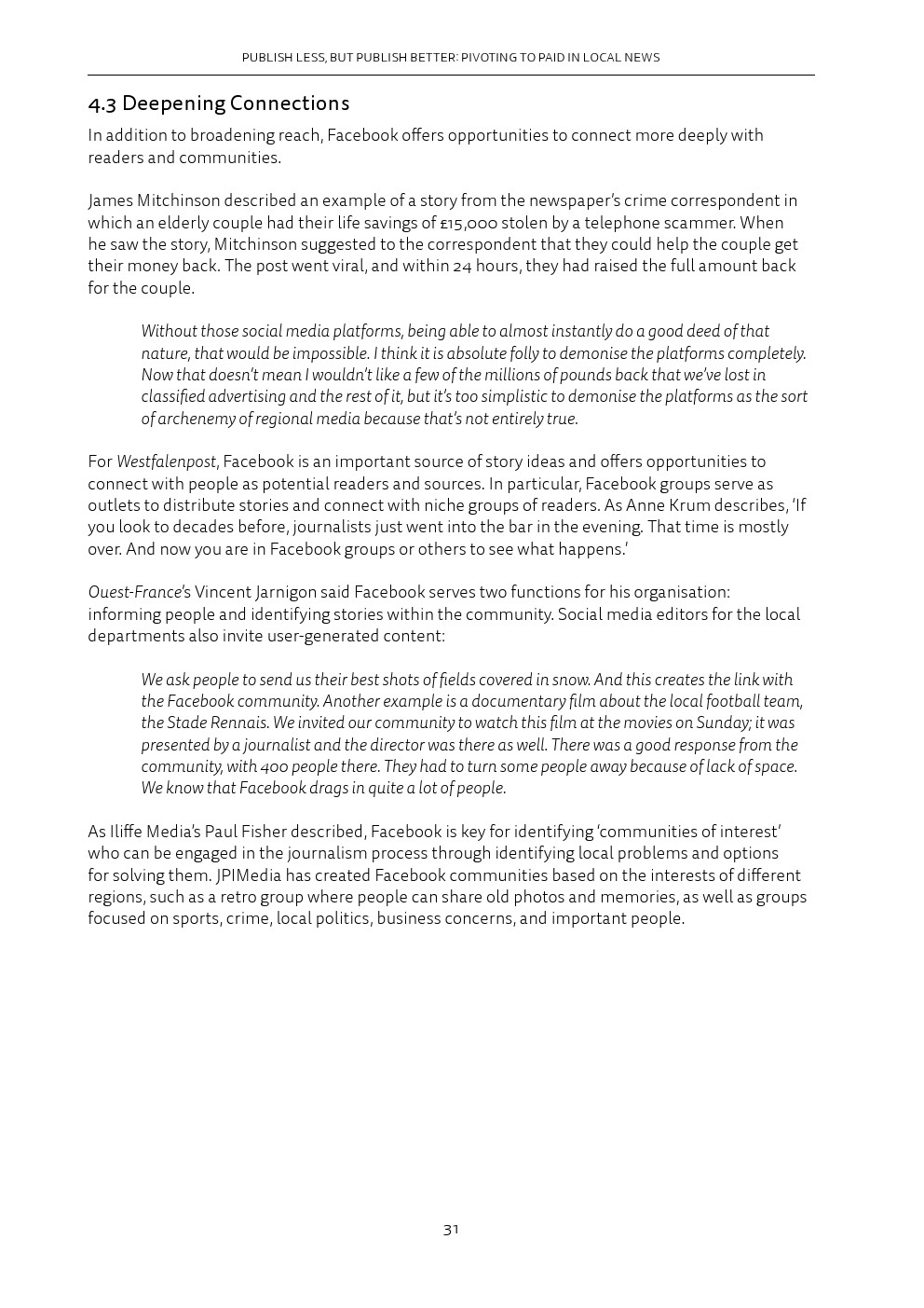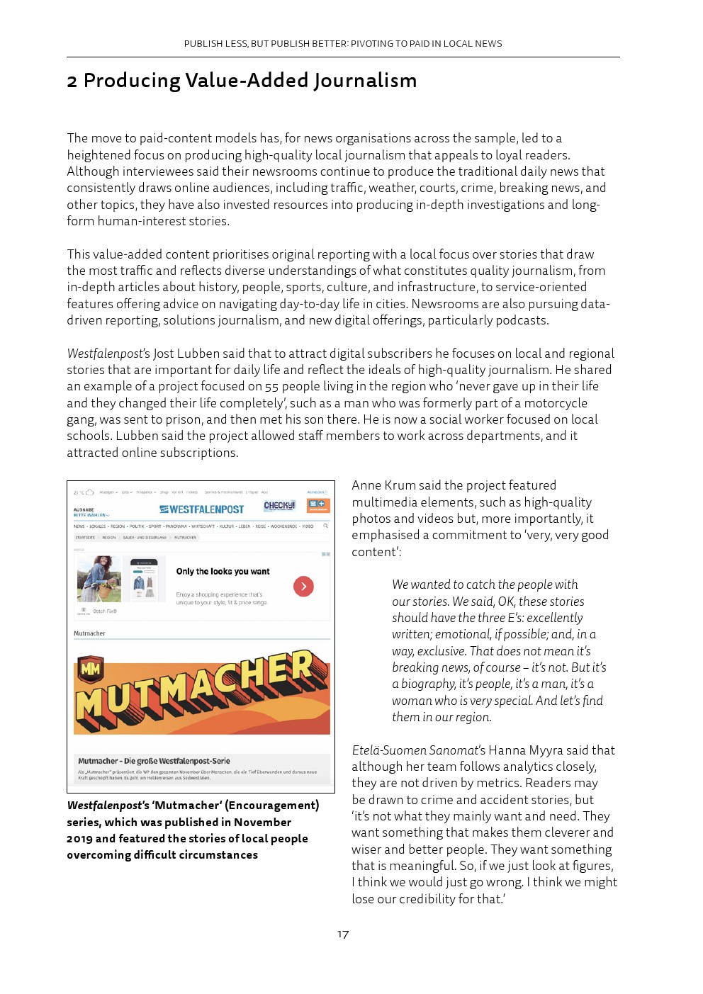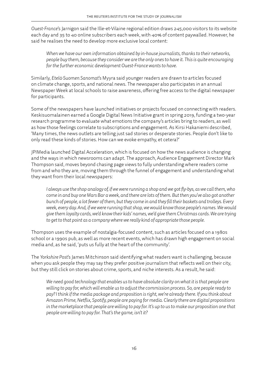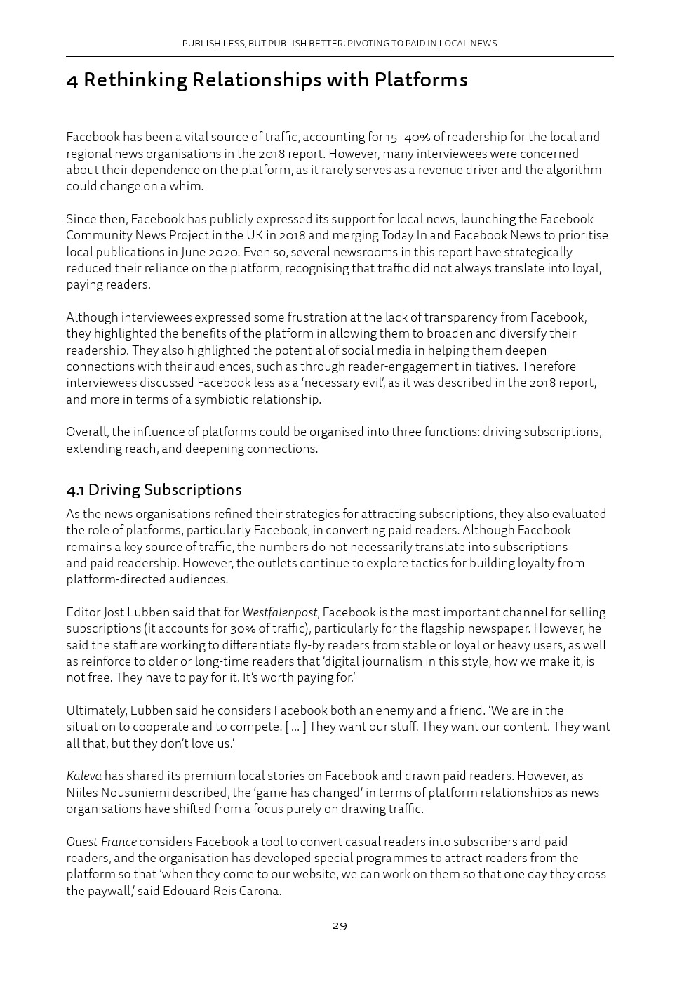 归根结底,这意味着忠诚度正变得至关重要,除了犯罪、法院和交通等典型的重点领域之外,报纸还要提供额外的“增值”项。这对Facebook和谷歌等平台公司来说是有影响的,这些公司已经将自己确立为新闻发现和流量的关键渠道。