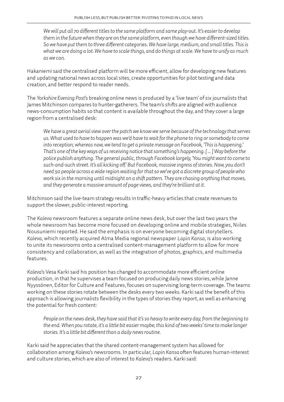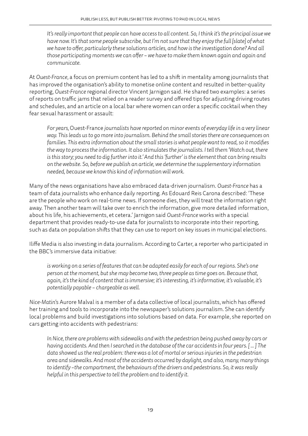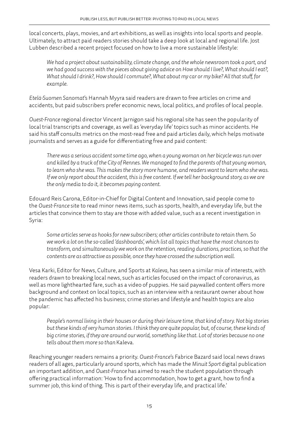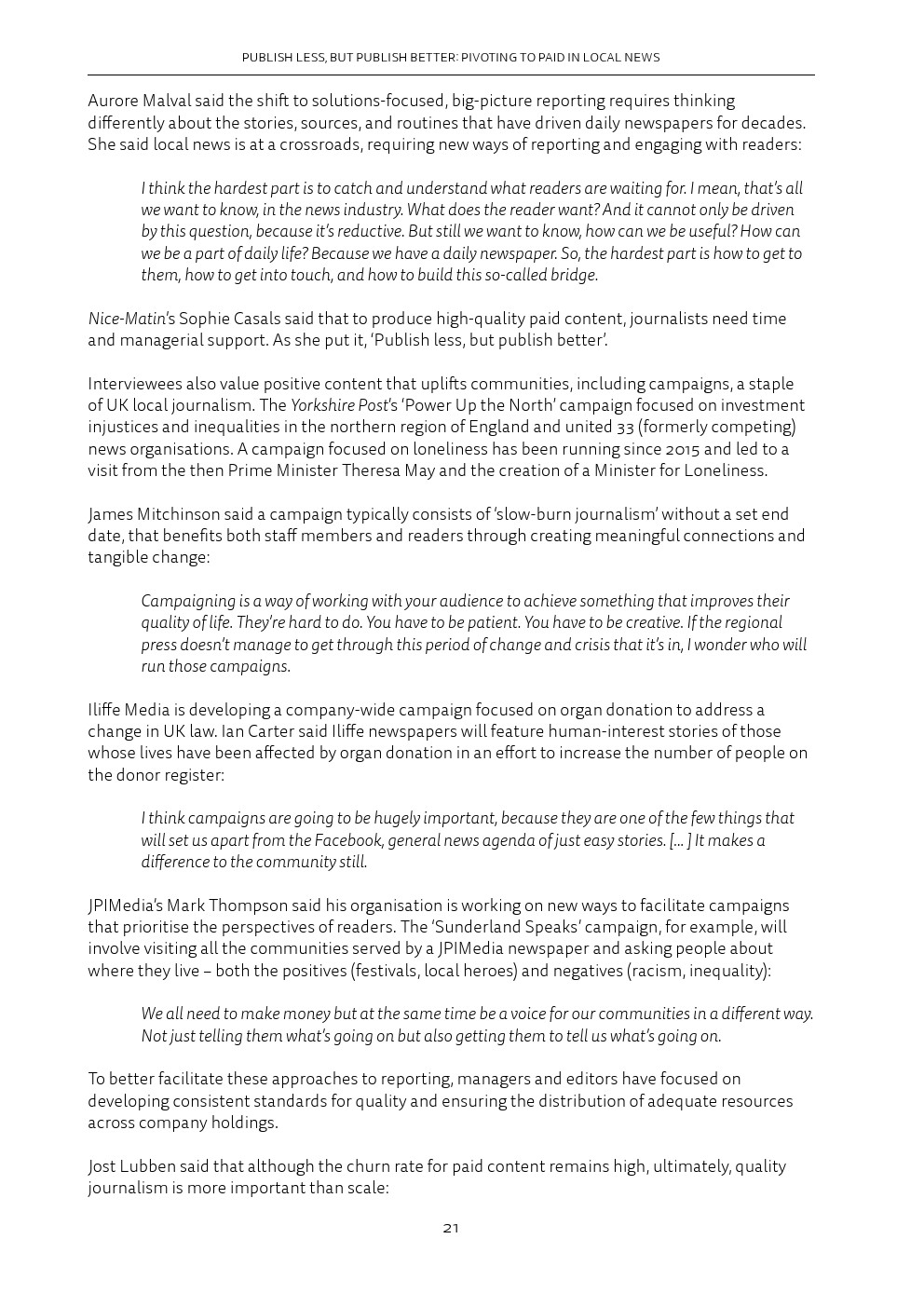 归根结底,这意味着忠诚度正变得至关重要,除了犯罪、法院和交通等典型的重点领域之外,报纸还要提供额外的“增值”项。这对Facebook和谷歌等平台公司来说是有影响的,这些公司已经将自己确立为新闻发现和流量的关键渠道。