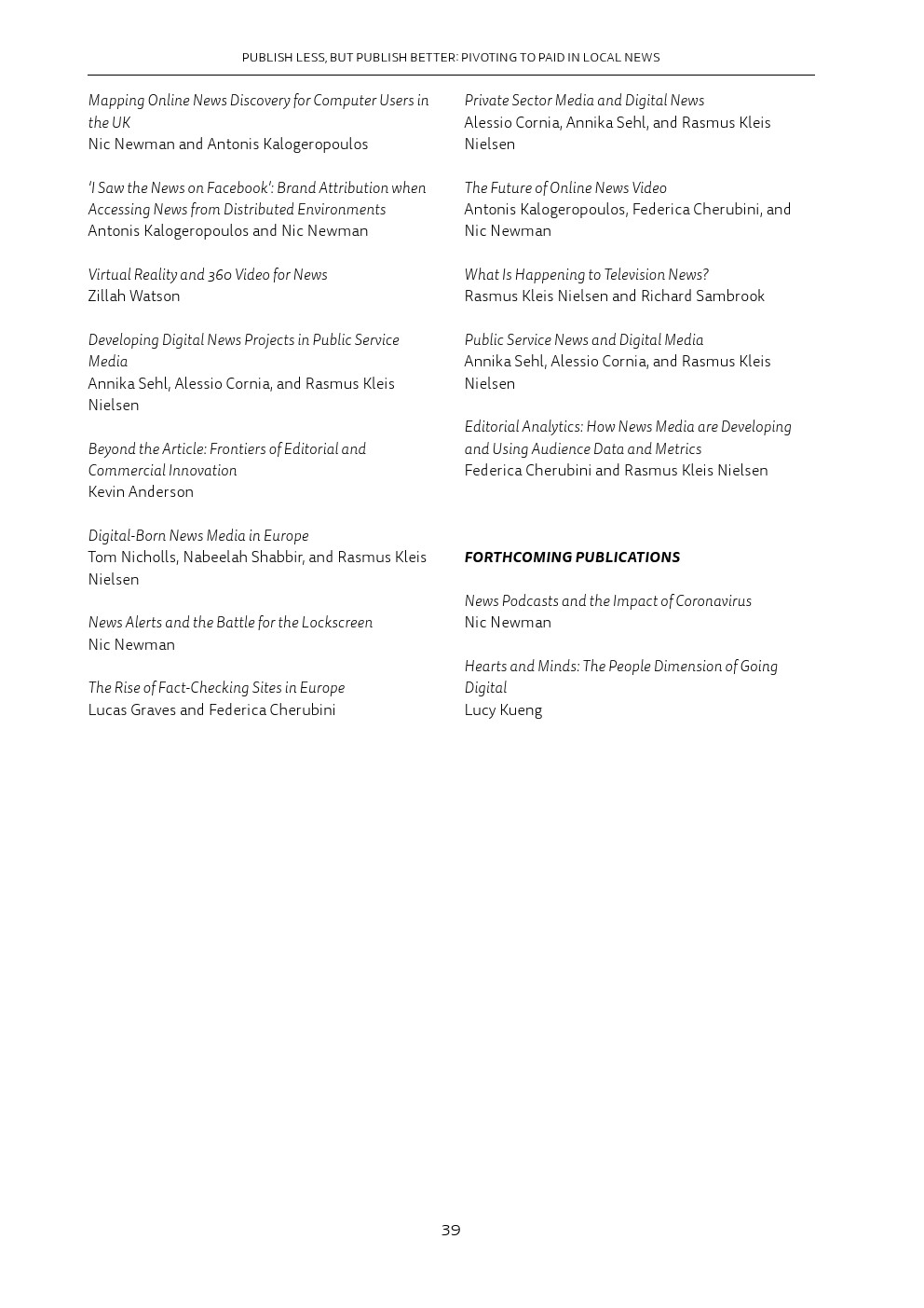 广泛调查结果表明,在过去两年,所有新闻机构的网络战略都从针对广泛受众的广告转向通过订阅、会员资格、获取优质文章、捐款或小额支付的形式与读者建立直接关系。欧洲和美国的网民更愿意为在线新闻付费。