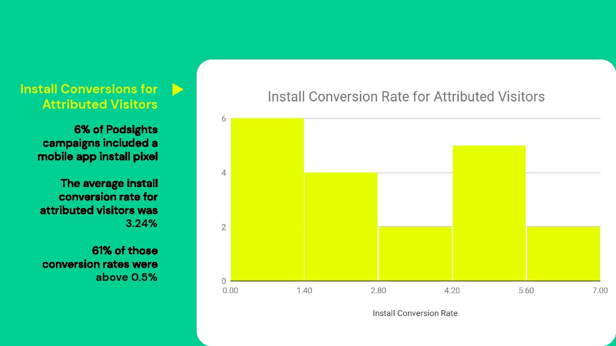 大约6%的播客广告希望追踪听众接触广告后是否下载移动应用,归因访问者的平均安装转化率为3.24%。