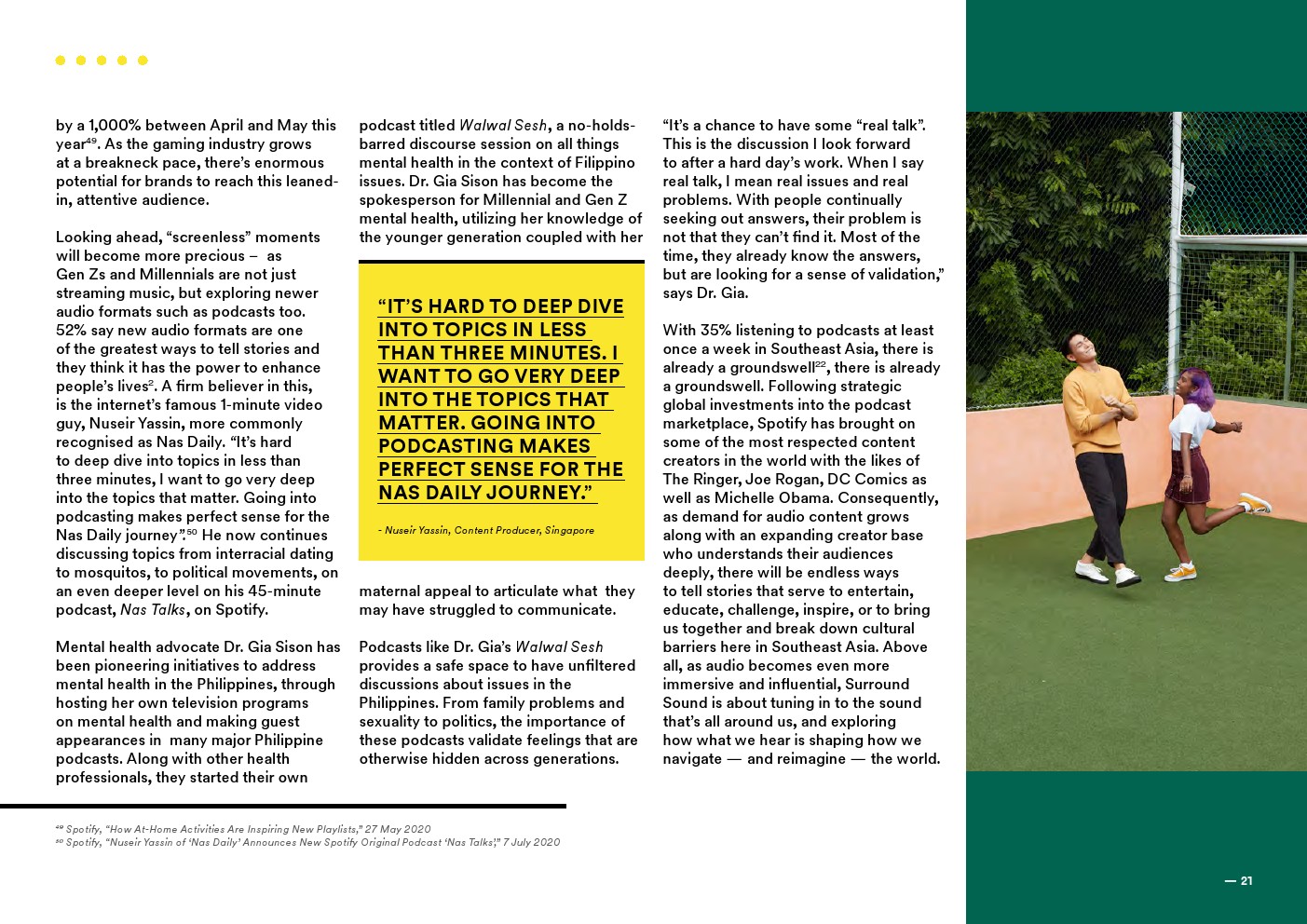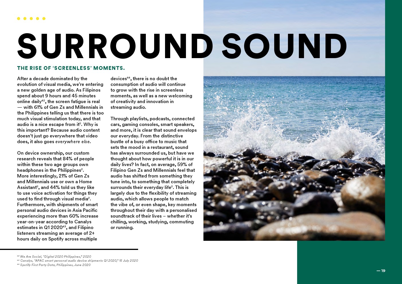 - 61%的菲律宾人认为视觉刺激太多,而音频则是一种很好的逃避。