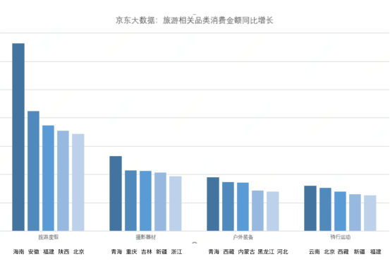 此外海南省“旅游度假”消费增长7倍,而宁夏、青海、甘肃等成为国庆期间旅游相关细分品类异地订单增长最快的省份,“到西部去”正在成为国内游的新风尚。