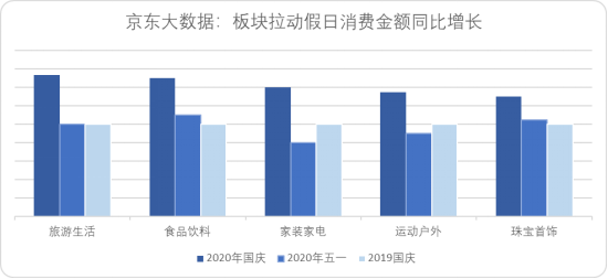 – 五大板块齐发力,旅游生活、运动户外、家装家电、饮料、珠宝首饰等拉动节日消费增长;