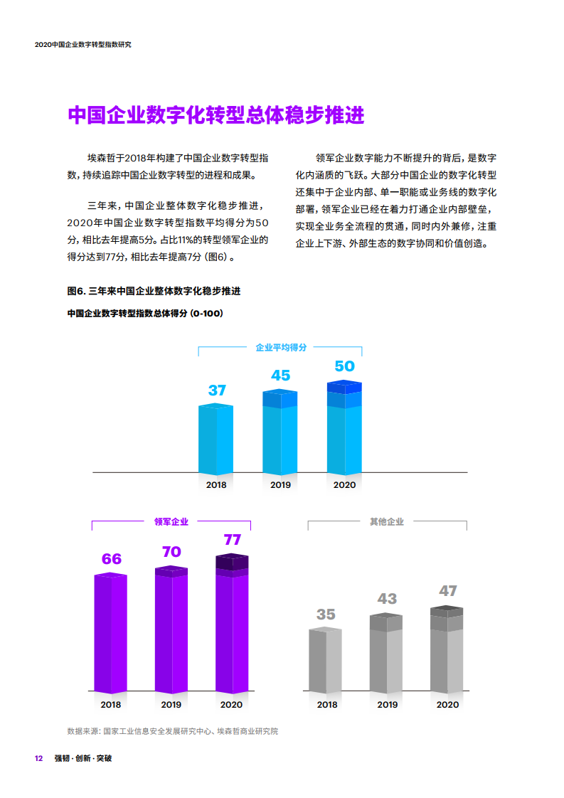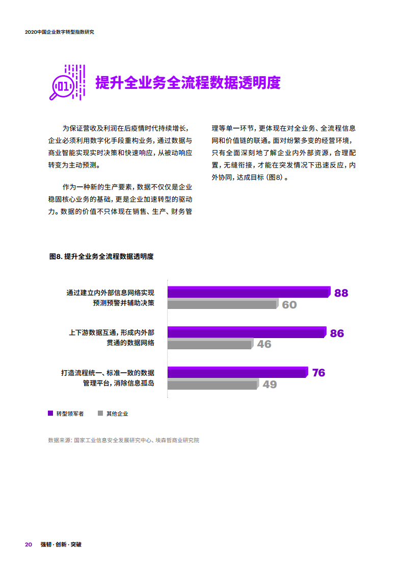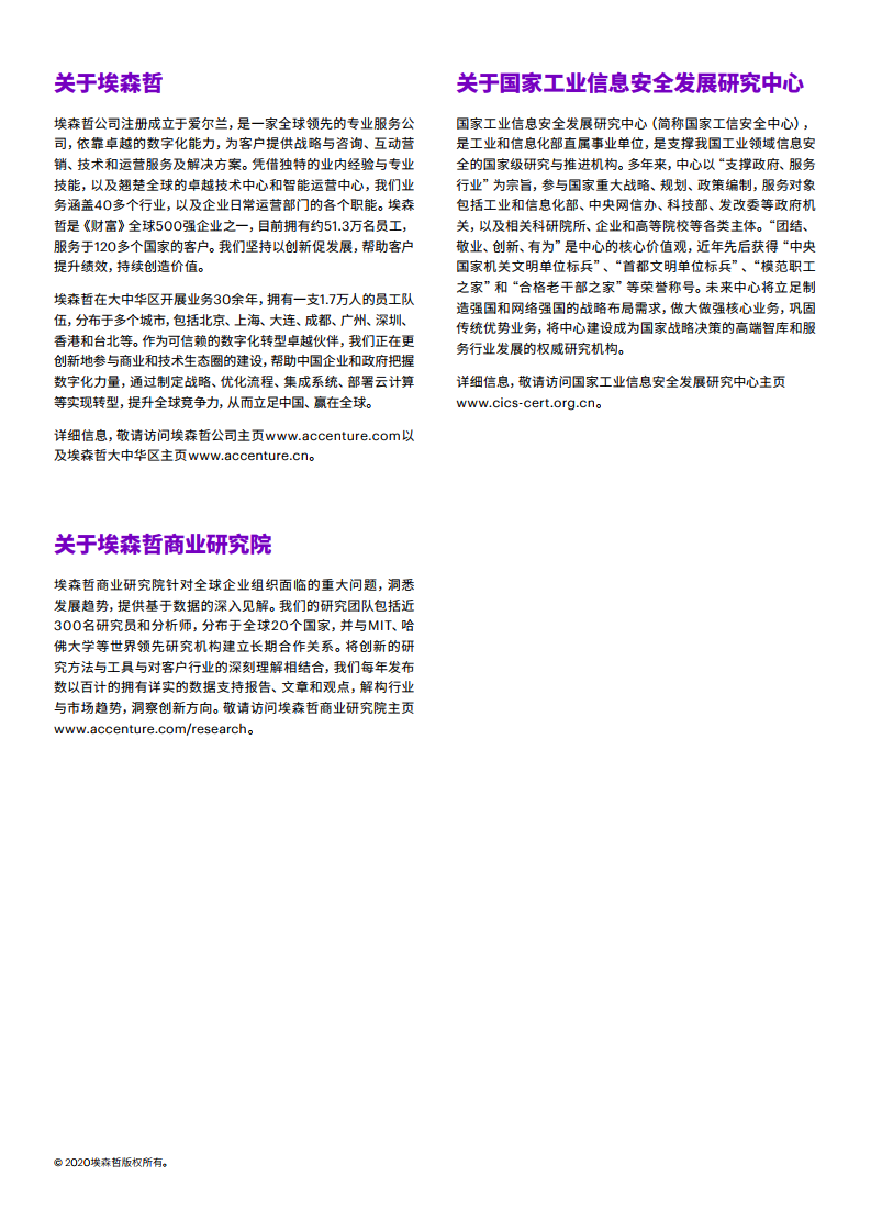 - 埃森哲与国家工业信息安全发展研究中心连续第三年合作,于2020年抽样调查中国企业数字化转型的成效。