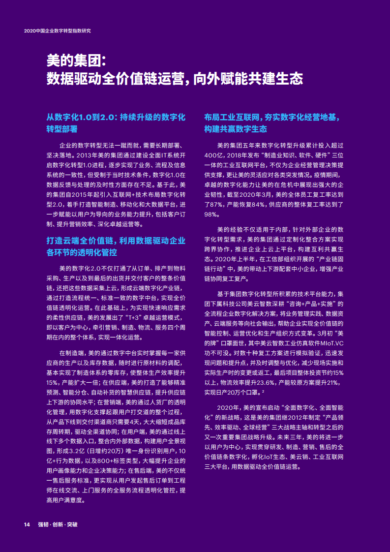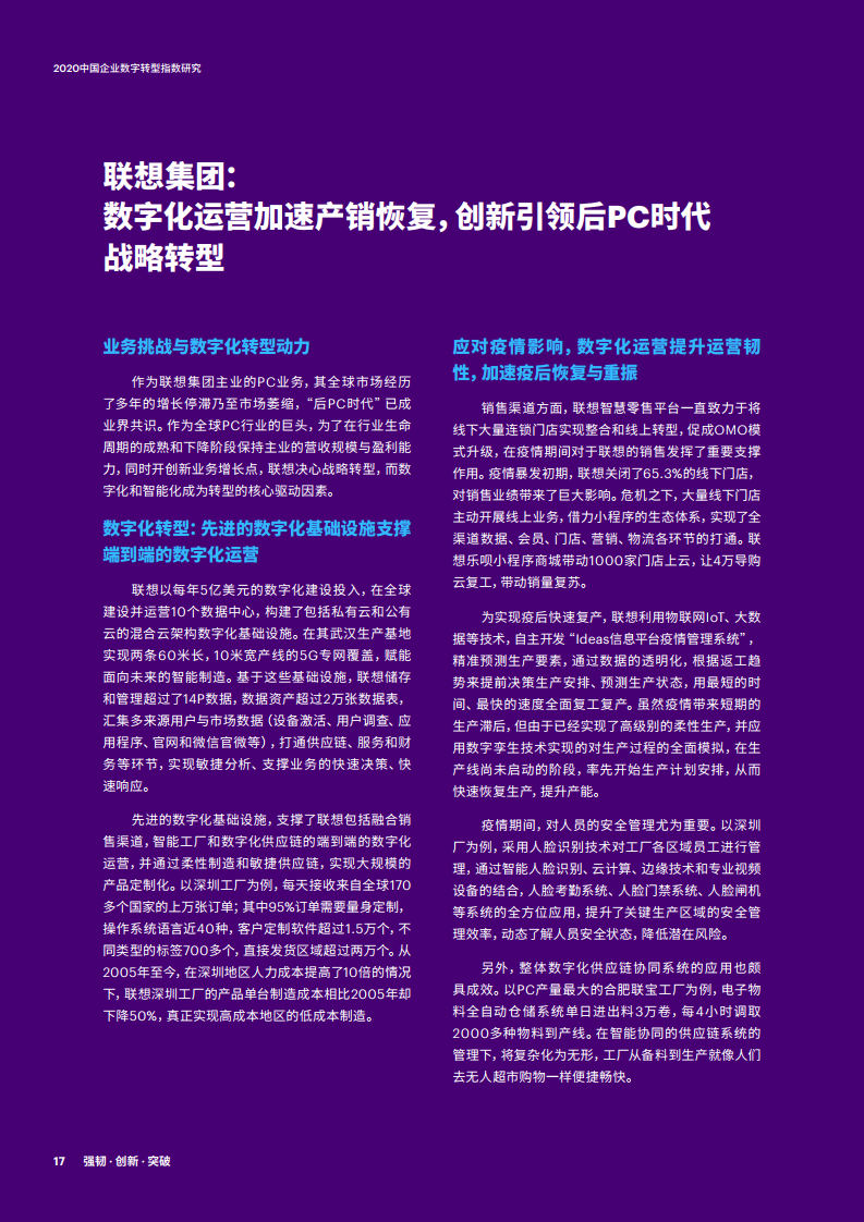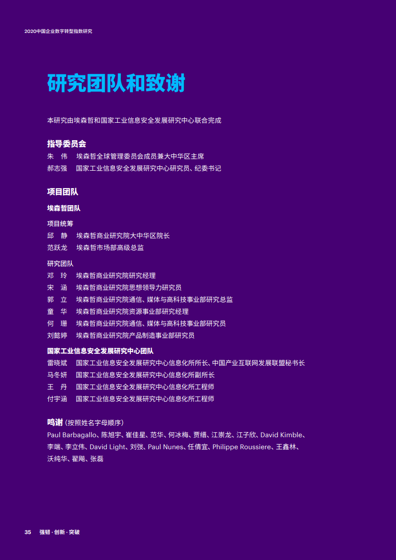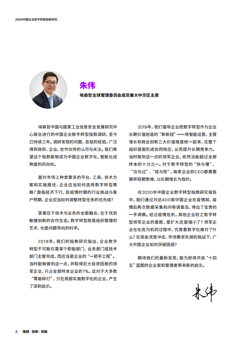 - 埃森哲与国家工业信息安全发展研究中心连续第三年合作,于2020年抽样调查中国企业数字化转型的成效。