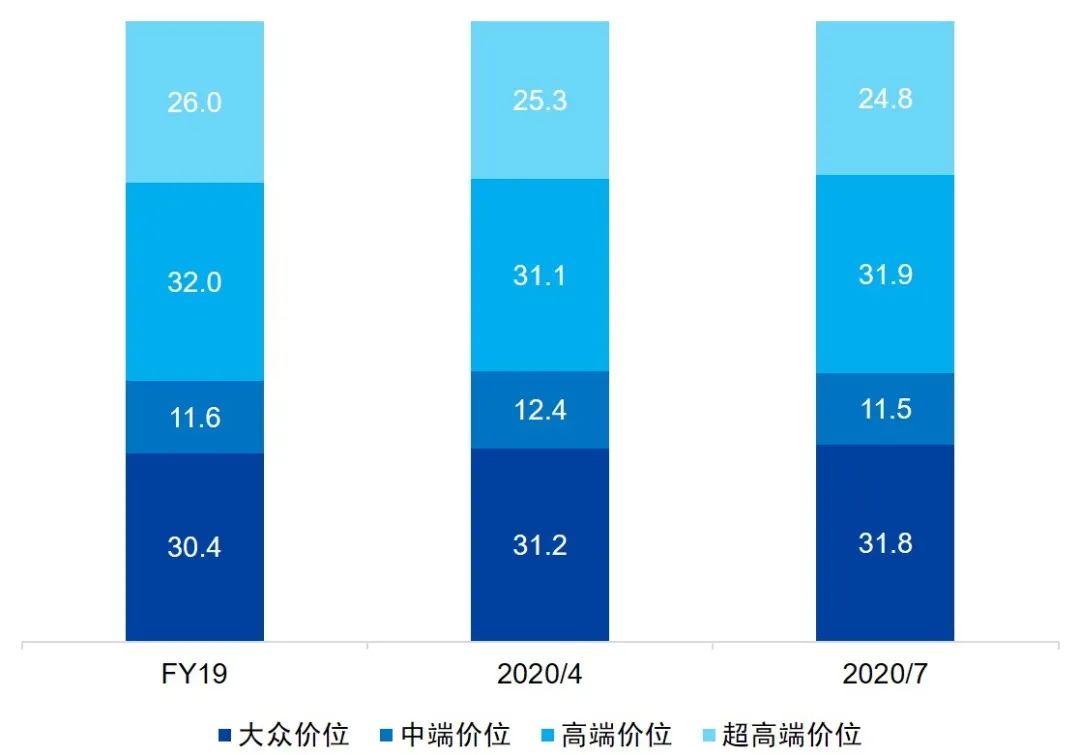消费价格趋势方面,受通胀上升影响,消费者进一步调整他们的日常开支。基础必需品类如液态奶、包装水、牙膏、洗发水,继续呈明显的消费降级趋势;卫生用品如消毒液、个人洗护、洗衣剂和洗洁精呈持续的消费升级趋势;主食则呈现出消费分级趋势。