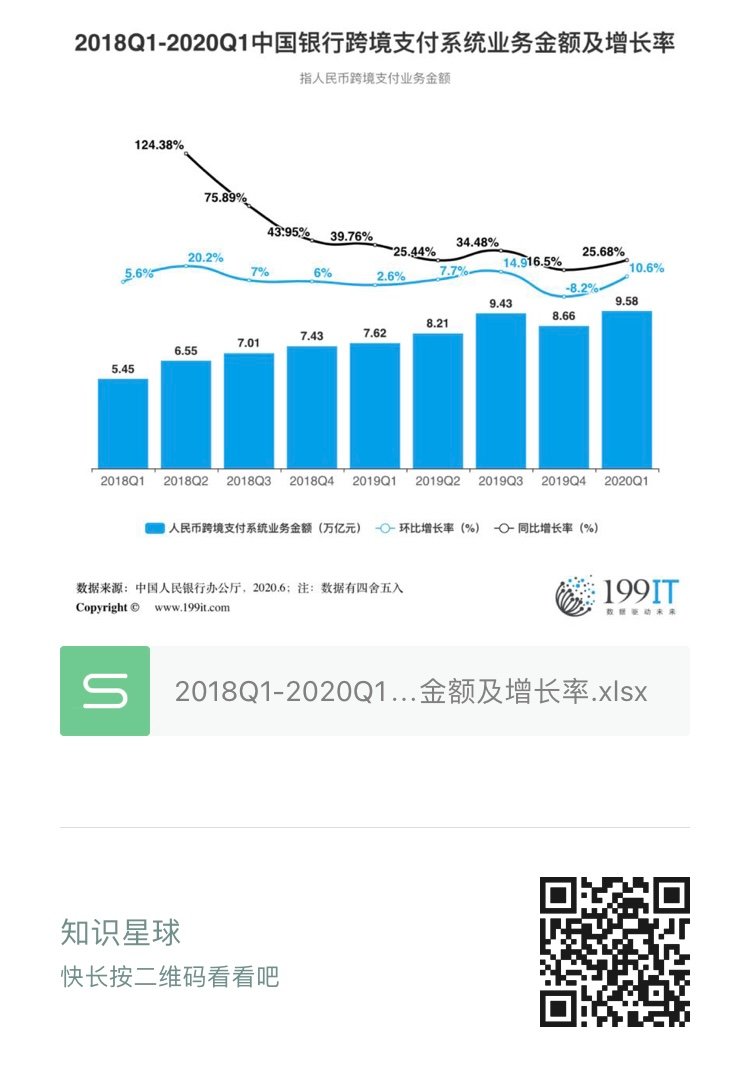 2018Q1-2020Q1中国银行跨境支付系统业务金额及增长率(附原数据表) ​​​​