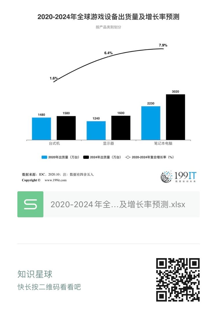 2020-2024年全球游戏设备出货量及增长率预测(附原数据表) ​​​​