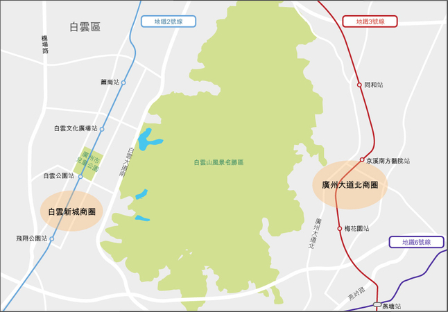 广州白云区的白云新城商圈是广州市的新兴商圈,位于白云山西侧,联通地铁2号线。随著越来越多公司总部和企业落户这里,配套的商住文化设施如白云国际会议中心、广州体育馆、广州市儿童公园等日益完善,白云新城商圈成为了现代化都市的中心城区。以白云汇广场、广州百信广场、5号停机坪购物广场、凯德广场•云尚和万达广场为主体的白云新城商圈,服务周边不同类型的消费客群。