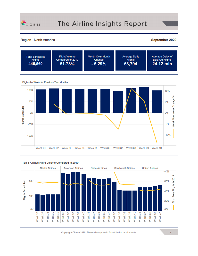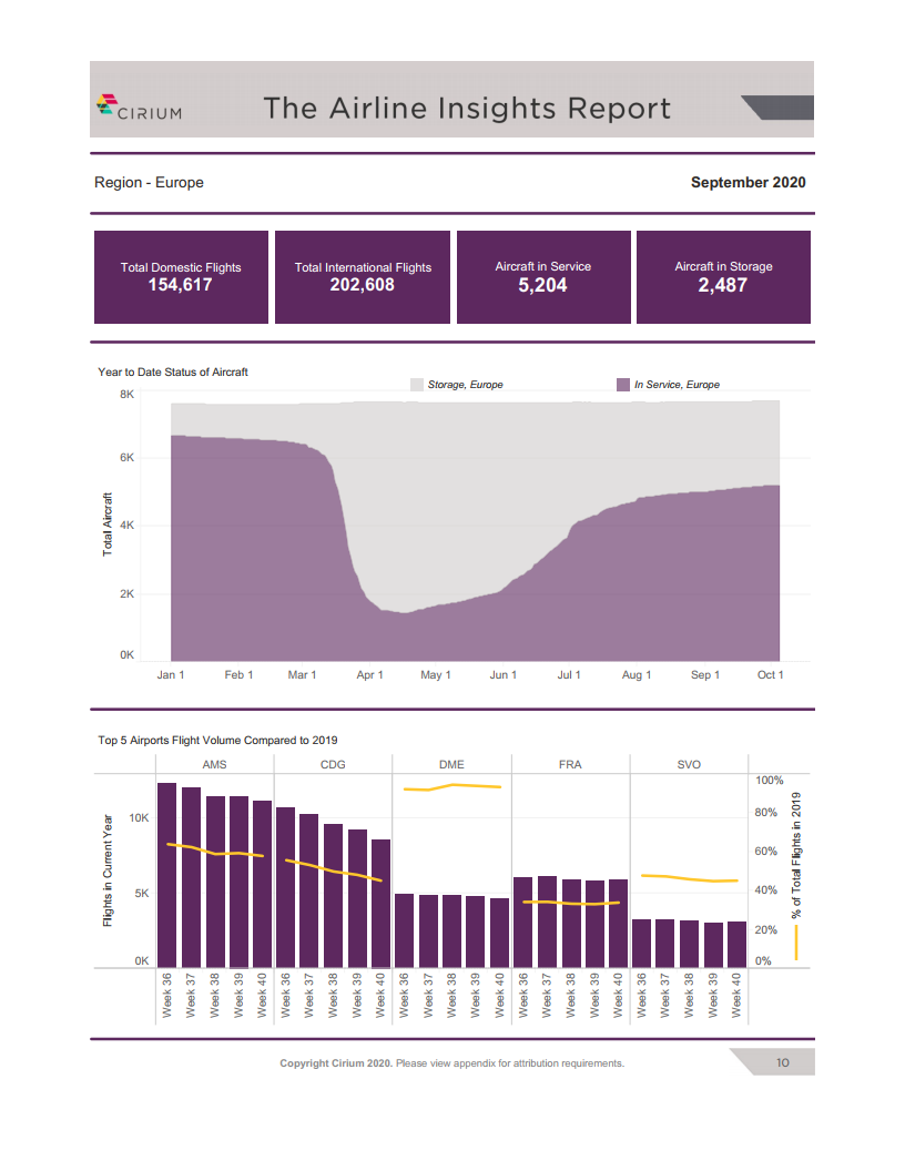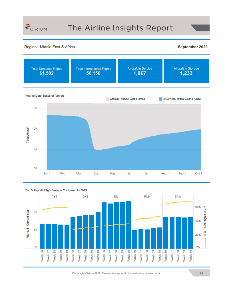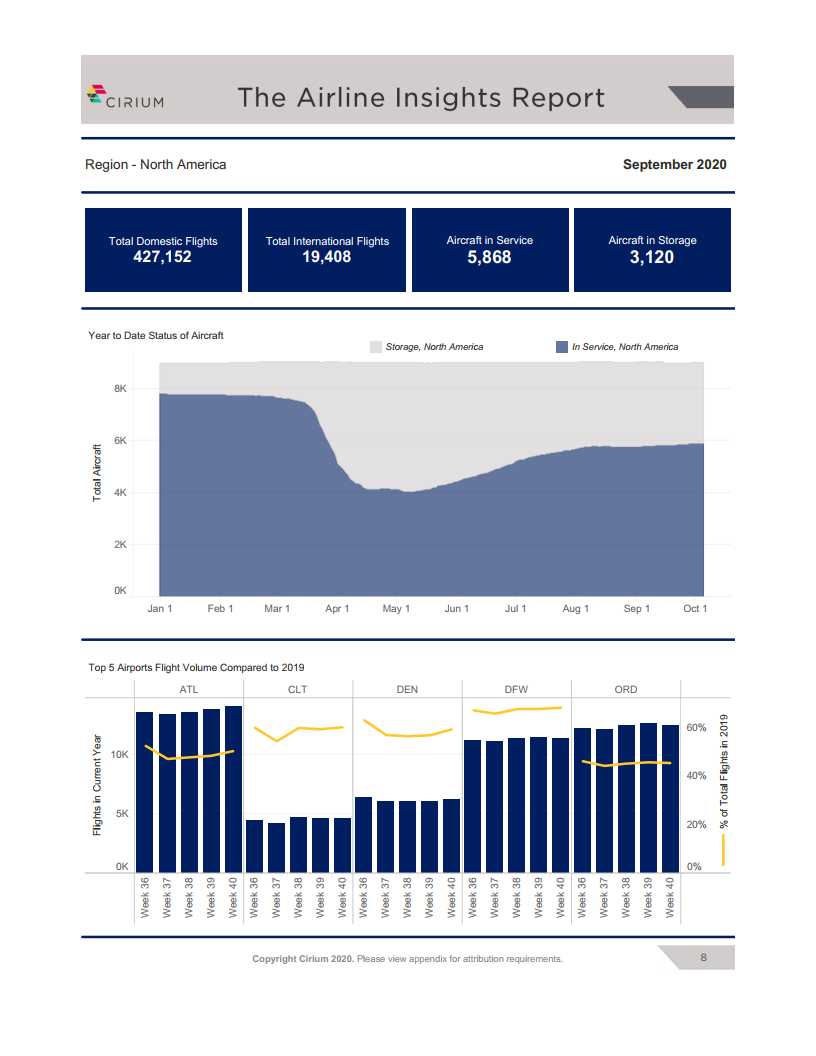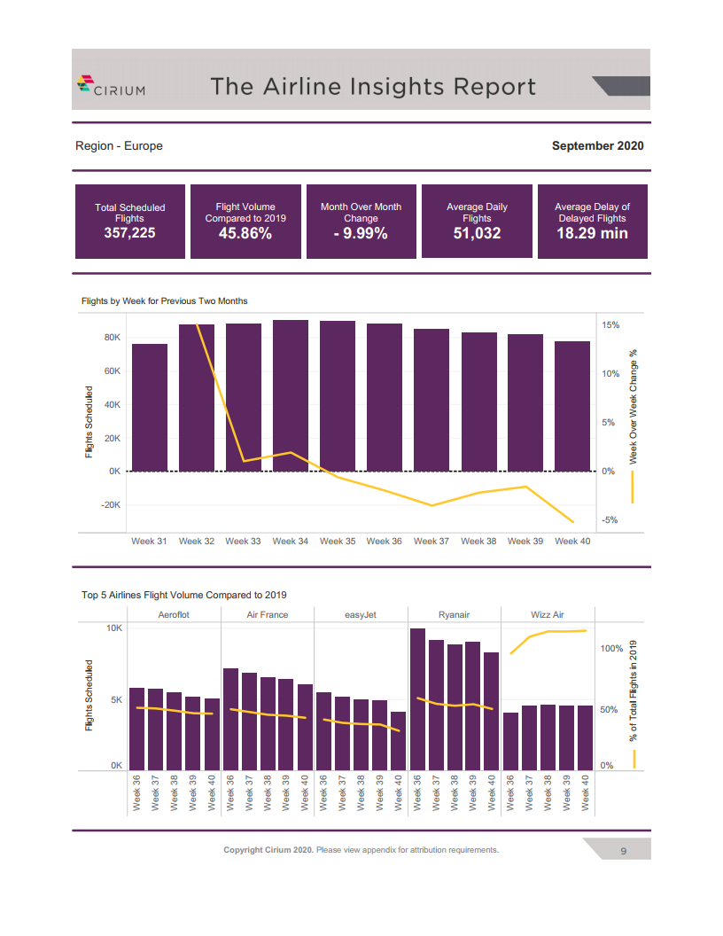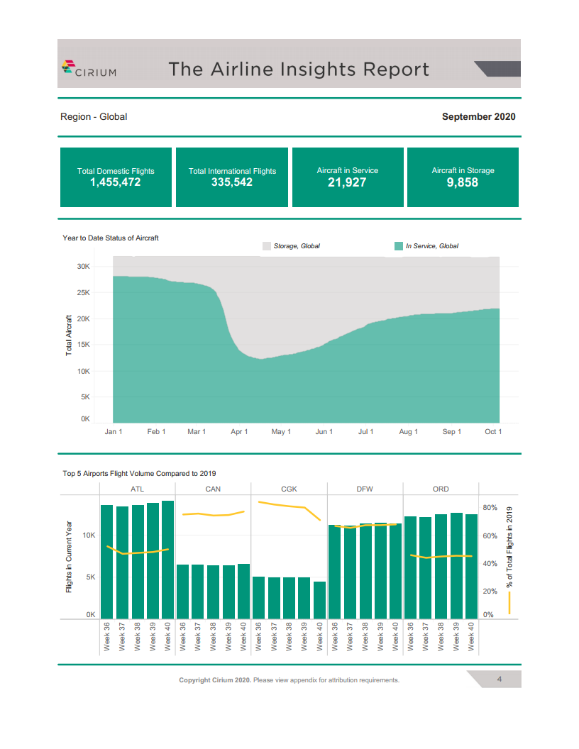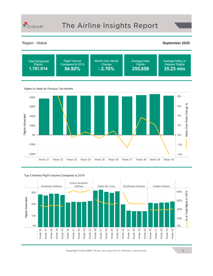 全球旅行数据和分析专家Cirium近日发布了《9月航空洞察报告》。今年9月份,全球计划航班为1,791,014个,为去年同期的54.92%。其中国内航班数为1,455,472个,国际航班数为335,542个;在役飞机为21,927架,停飞飞机为9,858架。