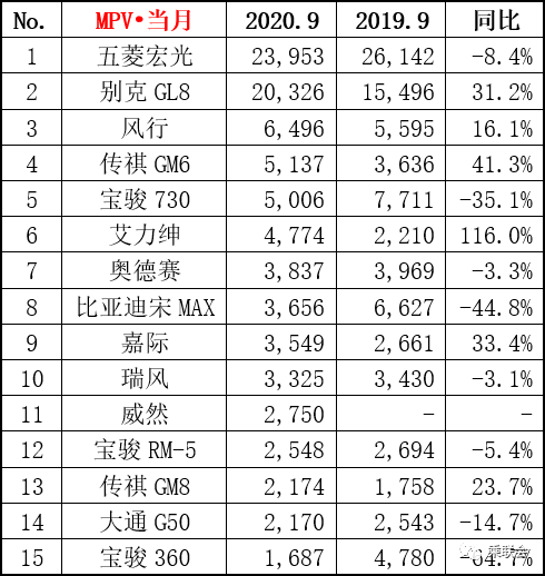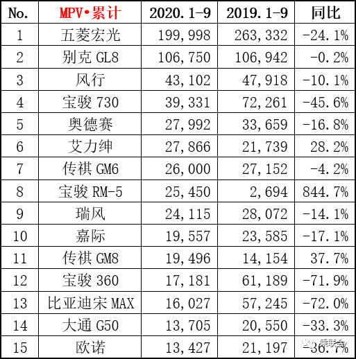 - 9月份MPV销量10.6万辆,同比下降6.3%,环比增长7.8%;累计销量73.4万辆,同比下降27.3%。