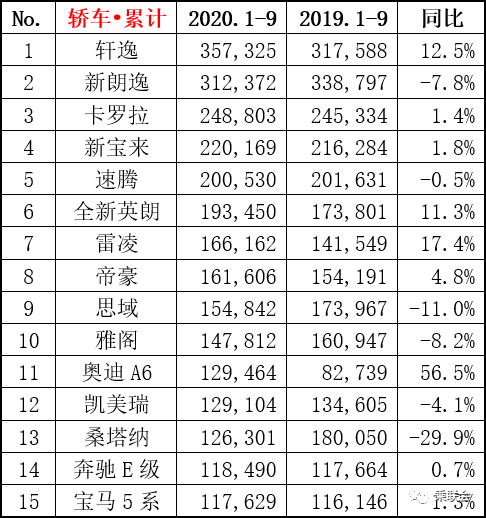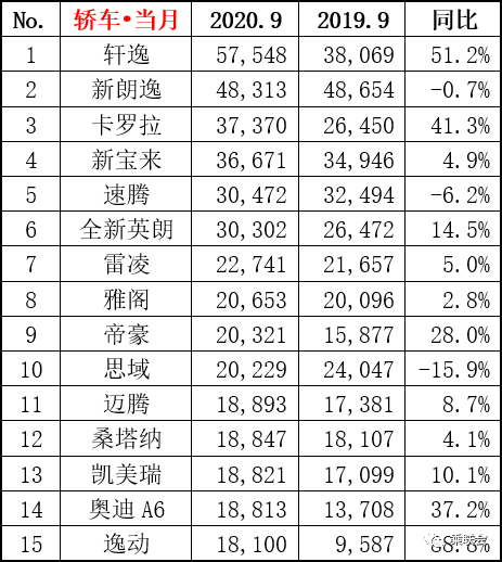 - 9月份轿车销量92.9万辆,同比增长8.2%,环比增长13.0%;累计销量622.9万辆,同比下降15.0%。