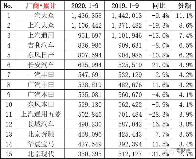 据中国汽车流通协会汽车市场研究分会(乘联会)最新零售销量数据统计,9月份国内狭义乘用车市场销量达191.2万辆,同比增长7.4%,环比增长12.2%;1-9月累计销量1292.7辆,累计增速-12.5%。