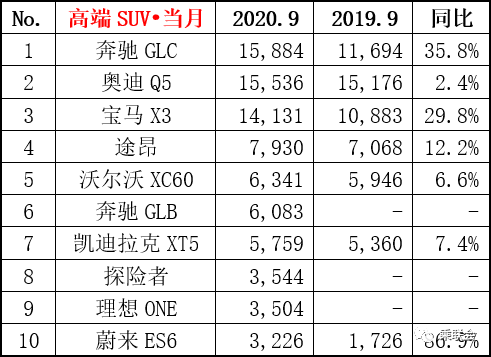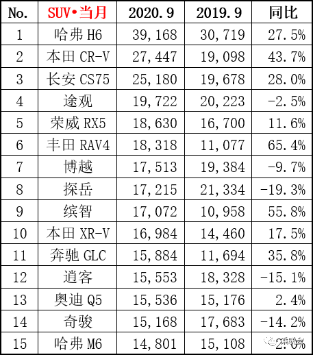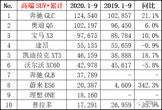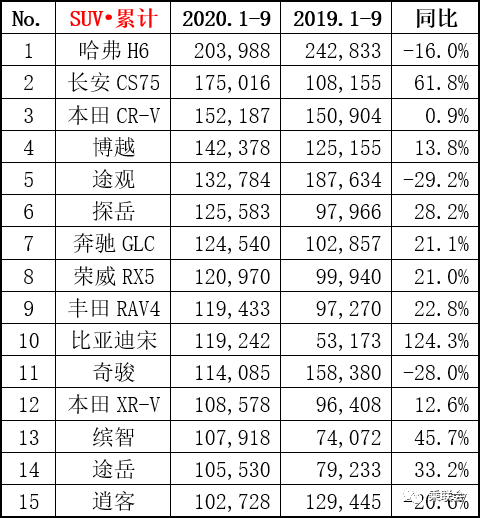 - 9月份SUV销量87.6万辆,同比增长8.5%,环比增长11.9%;累计销量596.4万辆,同比下降7.3%。