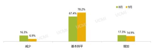 调查显示,9月份市场总需求有所增加,二手车经理人认为“增加”的比例为14.9%;“基本持平”的比例为78.2%;“减少”的比例为6.9%。