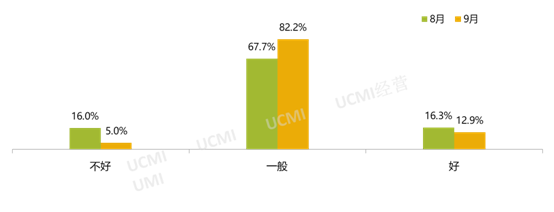 调查显示,二手车经理人认为9月份的经营状况较好,认为经营状况“好”的经理人比例为12.9%,认为“不好”的比例为5.0%。