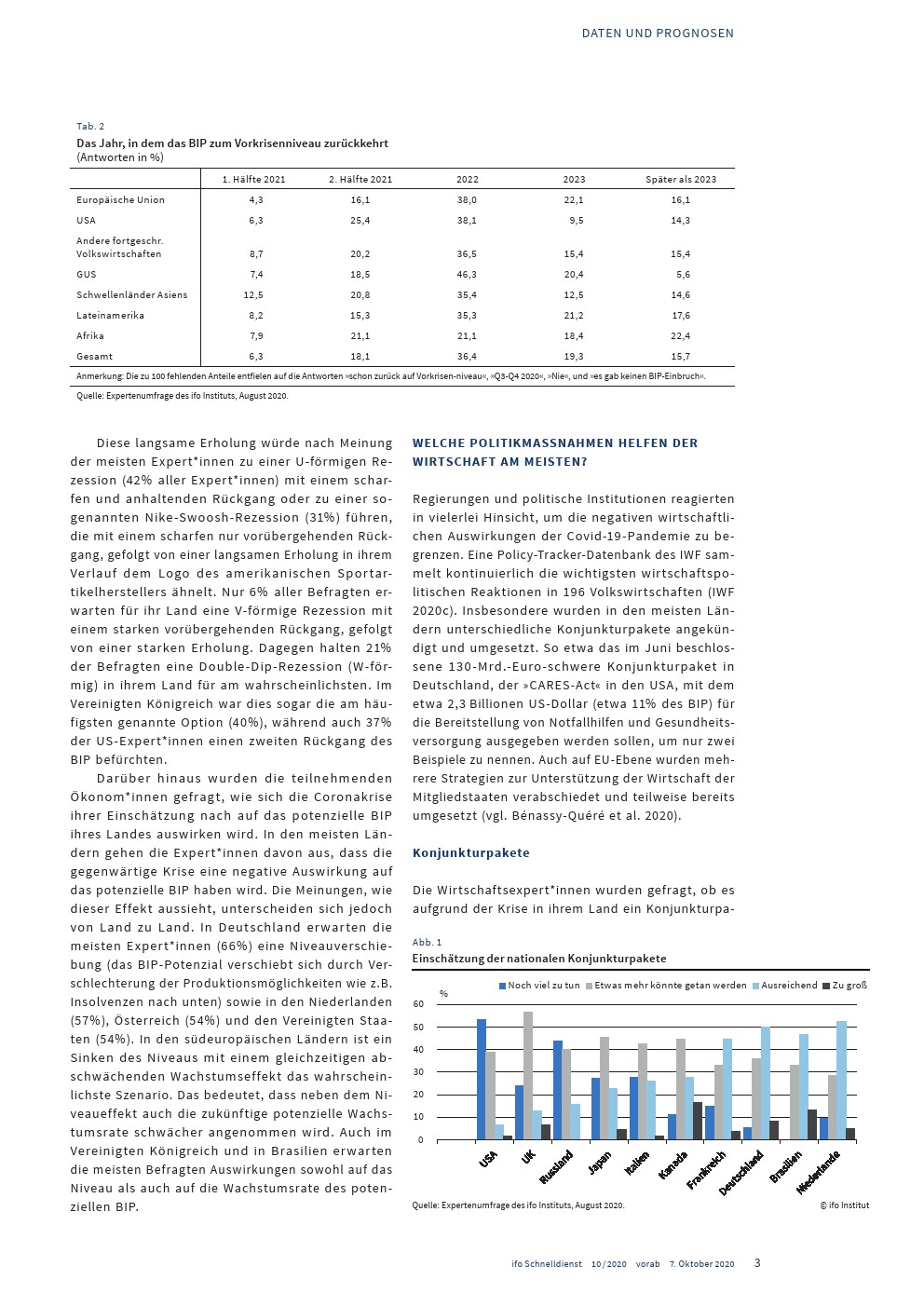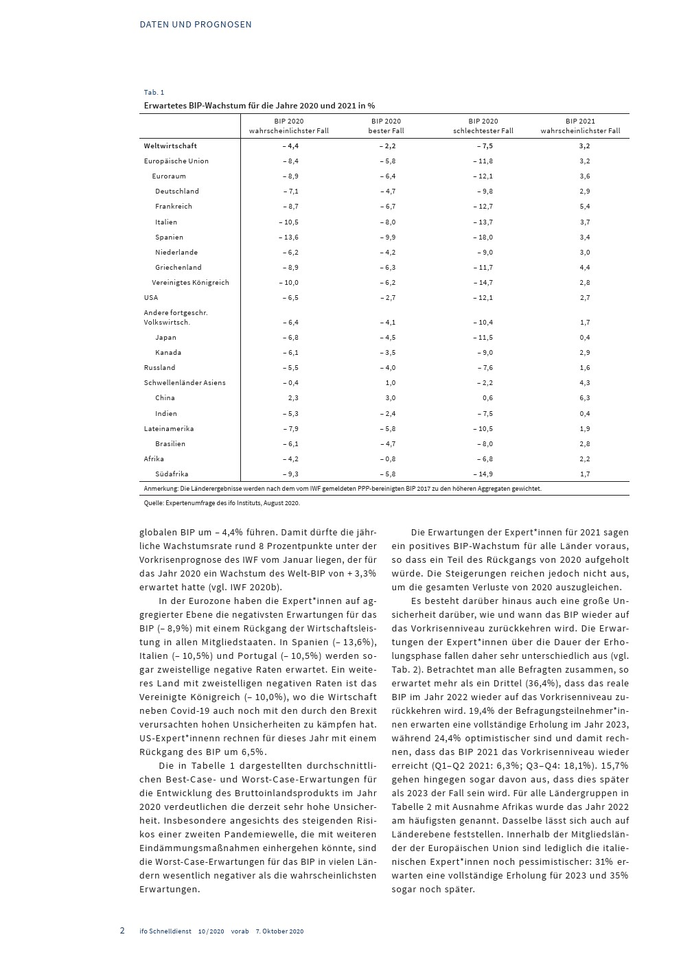 大流行及其限制措施使全球经济陷入严重衰退。2020年上半年,全球产量暴跌,几乎所有国家都陷入衰退。在遏制措施放松之后,经济活动再次回升,但根据国际货币基金组织自6月以来的最新估计,全球GDP的发展仍将显著低于-4.9%。国际货币基金组织的《世界展望》预测,2021年全球GDP增长5.4%。总体而言,2021年的GDP将比危机爆发前的预测低6.5个百分点。