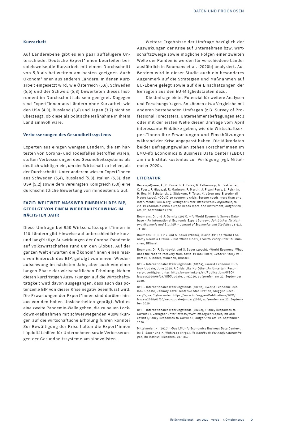 2020年8月12日至29日,Ifo研究所对110个国家/地区的950名经济专家进行了调查,以发现大流行对世界各国经济表现的影响