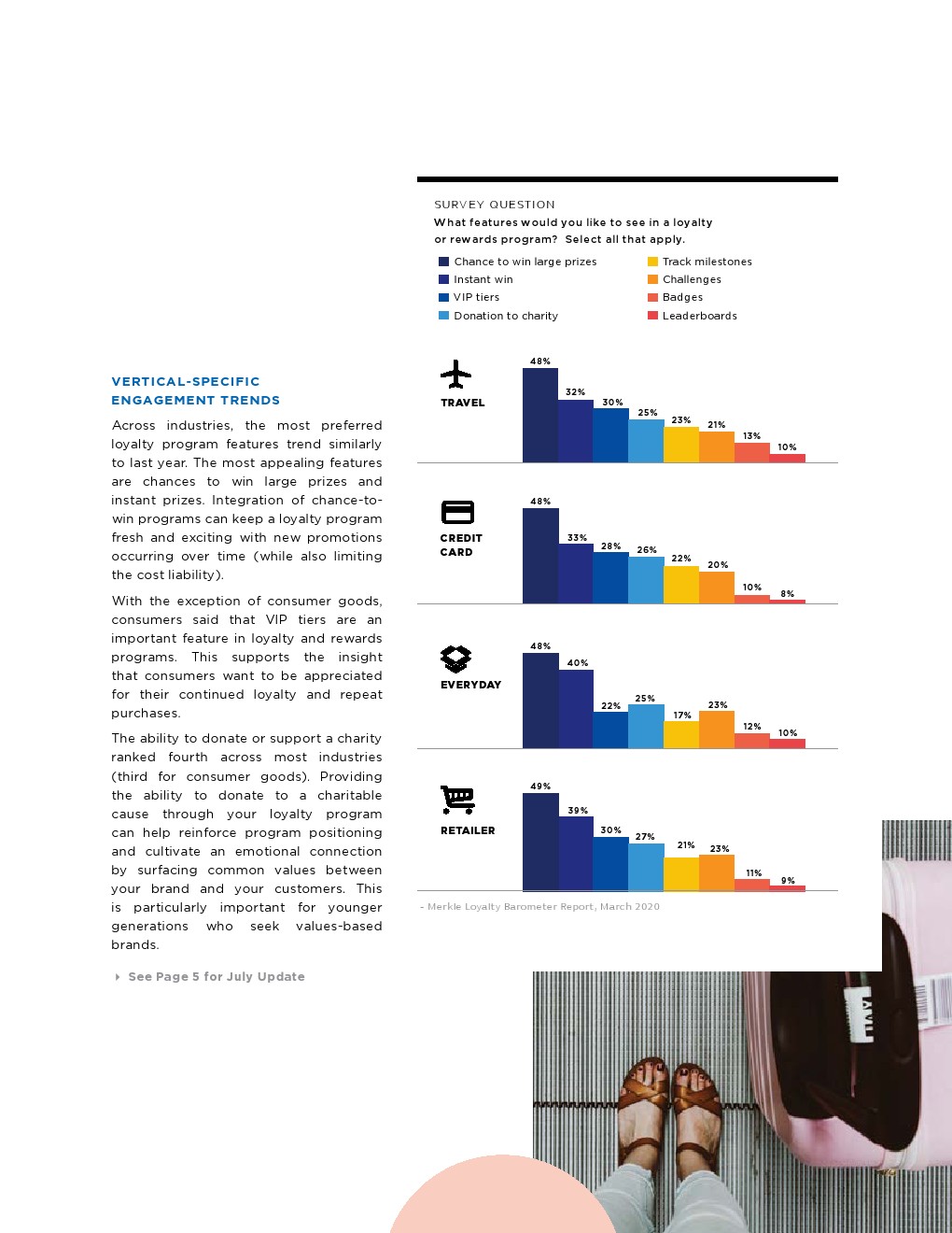 另一个可能受到新冠肺炎影响的领域涉及消费者希望在忠诚度计划中看到的功能。此前,消费者感兴趣的是赢得大奖、贵宾等级和慈善捐款。尽管消费者仍然希望看到这些功能,但在最近的调查发现选择这些功能的人更少了。