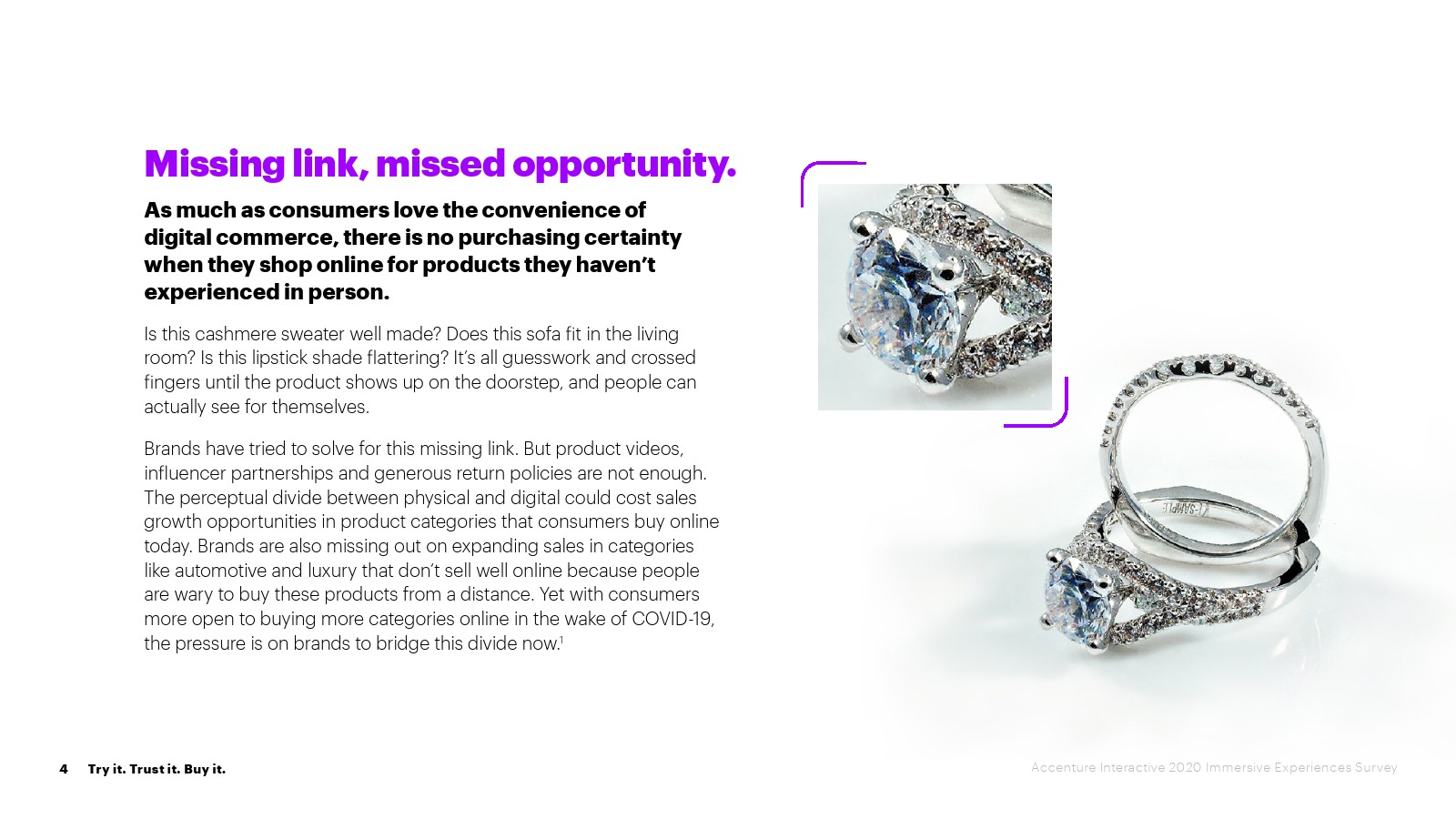 虽然消费者已经了解到网上购物有很多好处,但在线体验中还缺少一些元素。随着越来越多的沉浸式技术用于购物行业,埃森哲发布了一份新报告,探讨了是什么驱使消费者尝试这些技术,以及它对在线零售商可能意味着什么。
