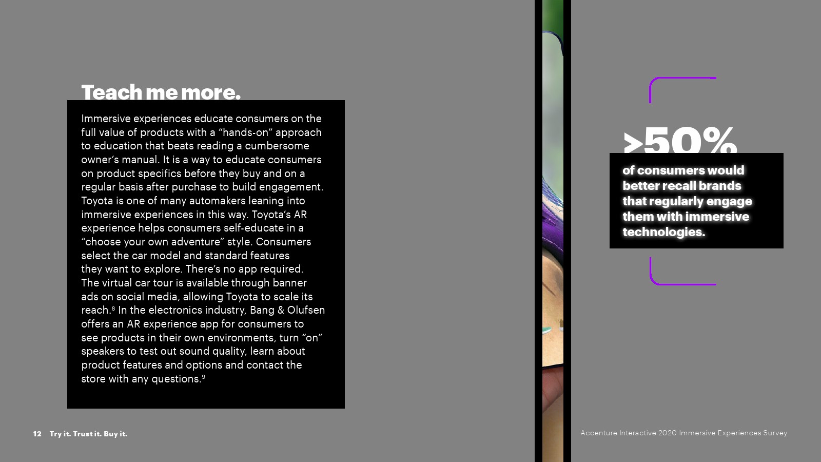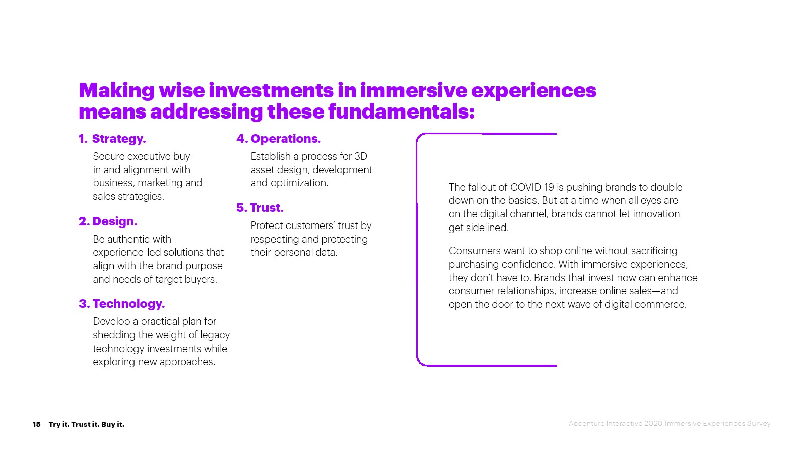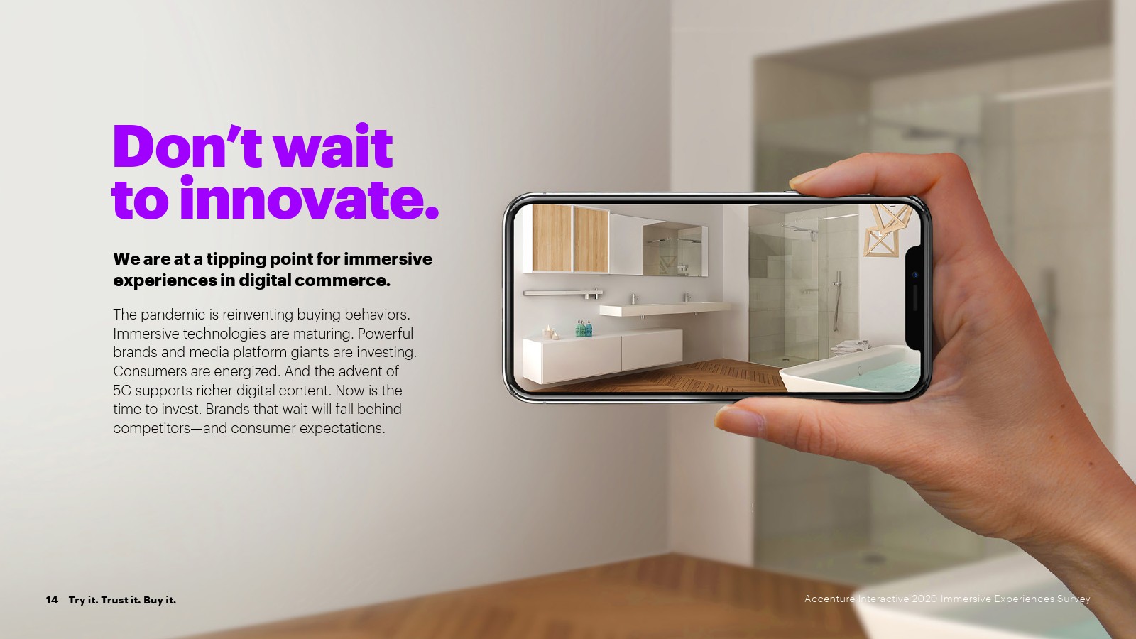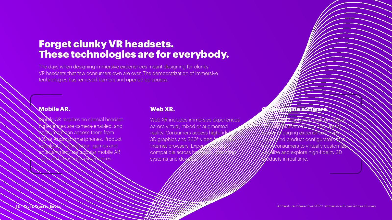 去年,GfK的一项调查发现,只有1/4的消费者预计在未来购物体验中会尝试AR/VR技术。但是,沉浸式技术的未来看起来很光明。埃森哲的调查显示,消费者认为沉浸式和虚拟技术将对未来的购买决策产生更大的影响。