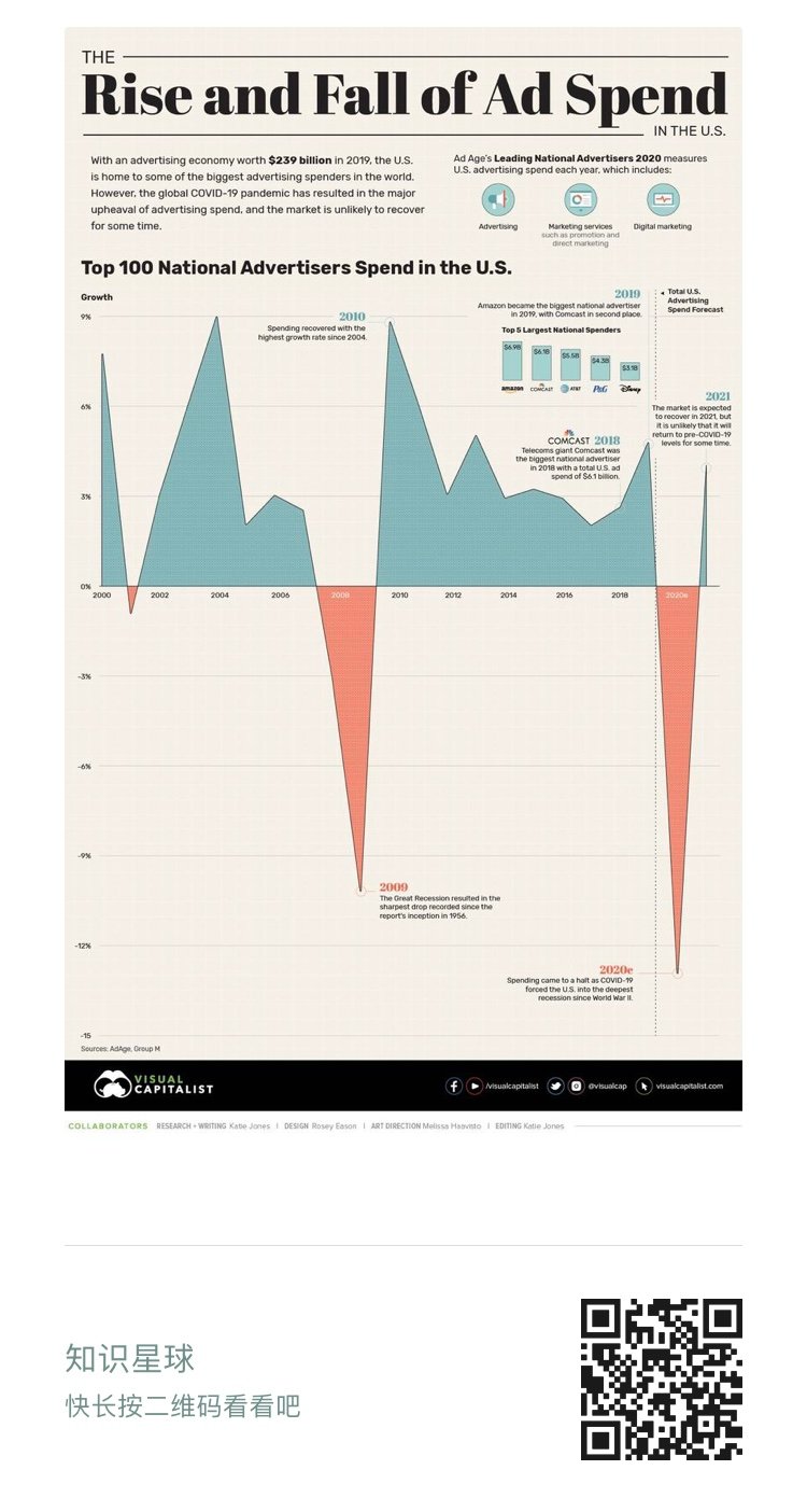 20年美国广告行业支出起伏 更多阅读:消费者品牌报告:寻找真相城市新忙族——一二线城市上班族营销洞察微报告热云数据:三国题材游戏广告投放洞察iPrice:大流行期间浪漫礼物搜索量在东南亚增长57%Salesforce:2021年联网消费者报告热云数据:2018年双11电商APP广告投放行为洞察专题报告CTR:2021年5月电视广告花费同比增长12.5%MAGNA:流媒体电视广告报告2019年数字广告市场将达2500亿美元 60%以上移动应用通过应用内广告盈利Dentsu Aegis Network:世界杯推动2018年全球广告支出增长3.9%注意力2.0:品牌影响的可见度Adobe&Econsultancy:2018年数字趋势报告Neustar:2022年营销人员的三个关键投资领域互联网周刊:2015年网络广告公司排行榜TOP50盘点十大”逼疯”用户的网络广告