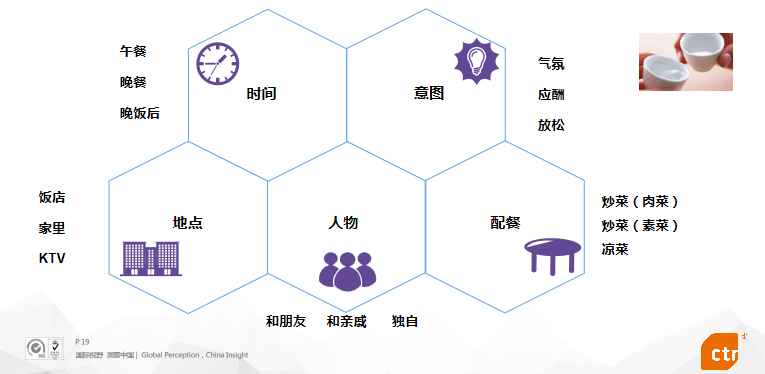 通过对消费者的深度洞察,我们会发现,在饮酒场景细分领域,品牌可以做很多文章。例如饮酒的时间、氛围、参与者、配菜等,将这些要素集中提炼并进行充分的营销创意点挖掘,将会大大释放品牌在细节处的感染力。