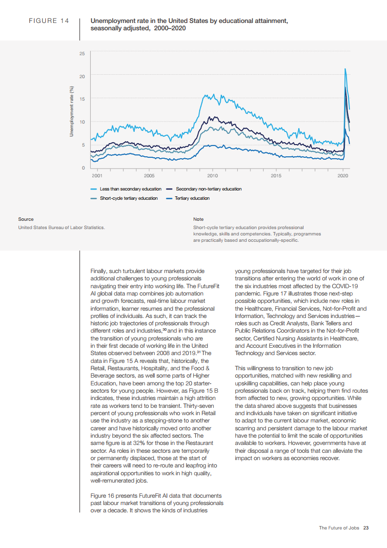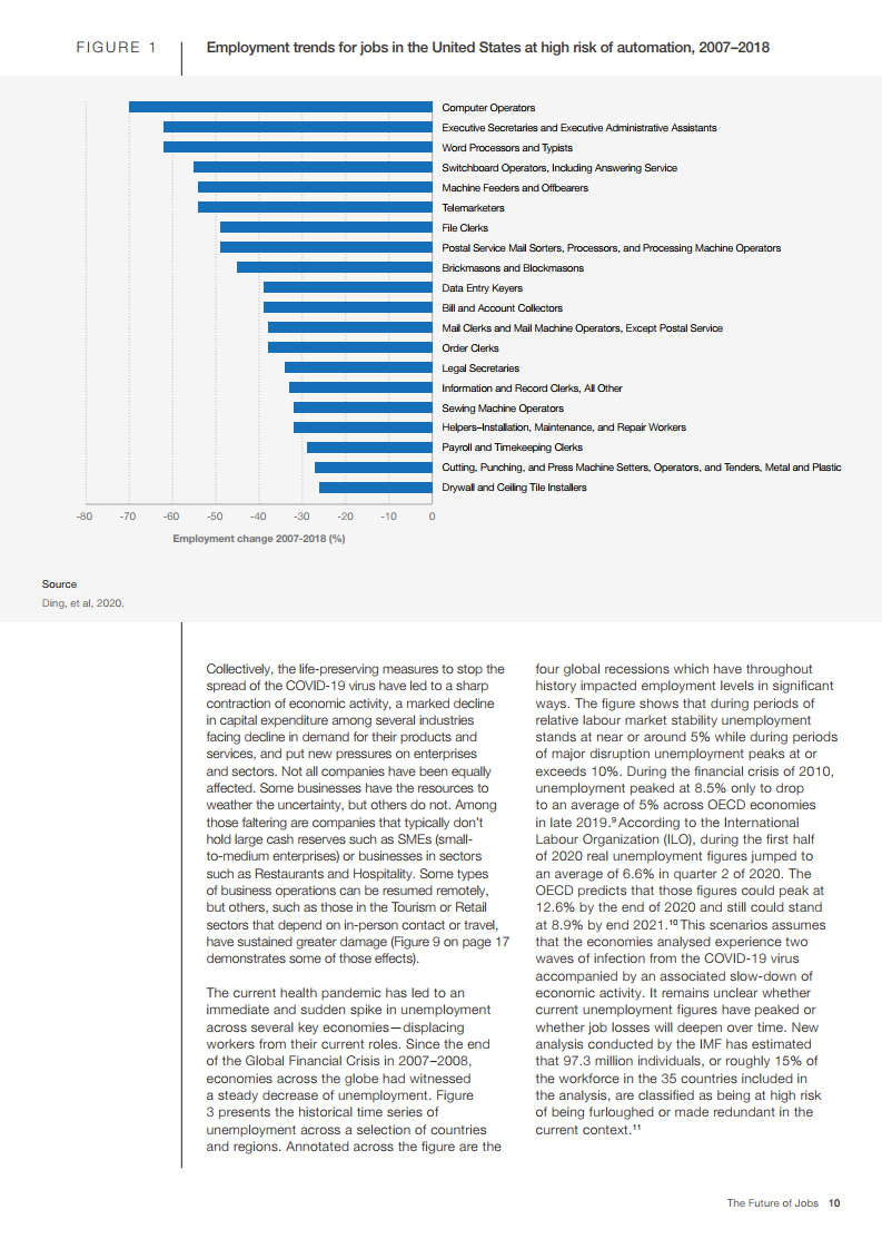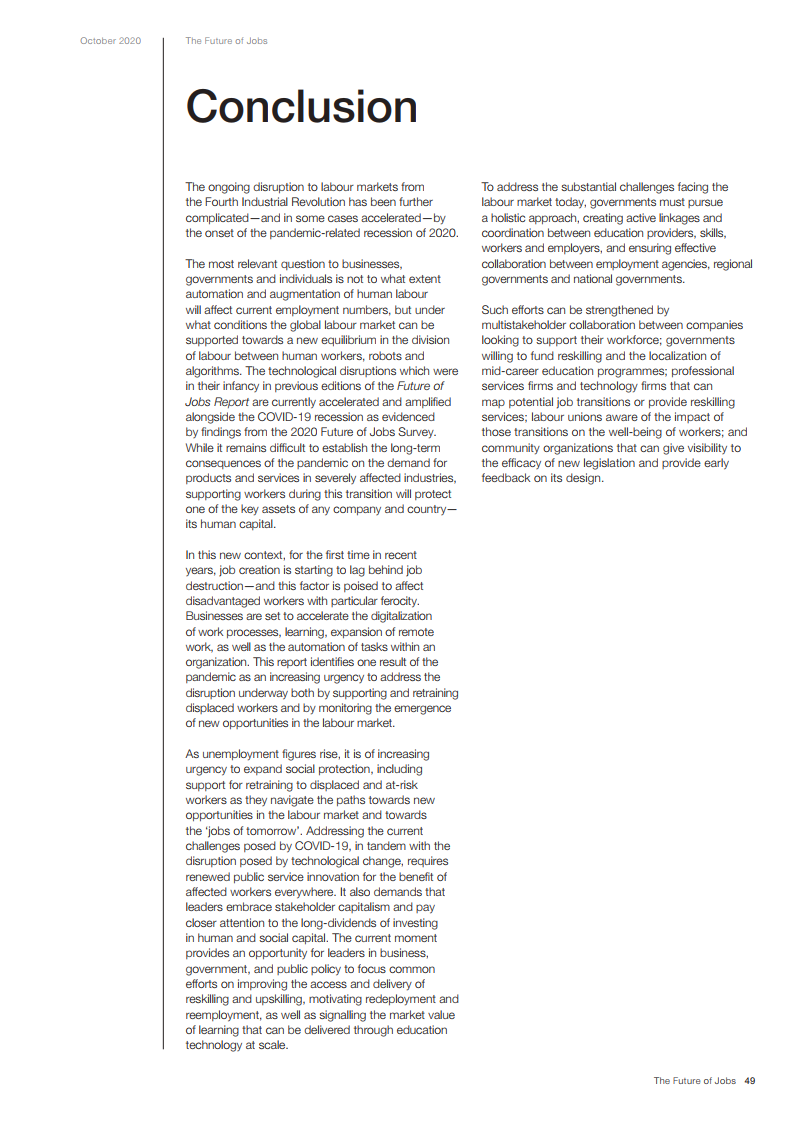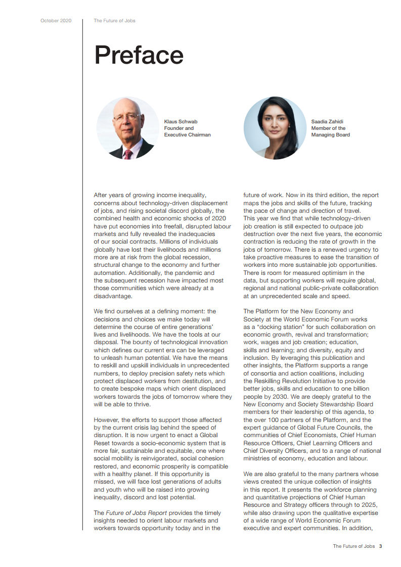 世界经济论坛《2020年未来就业报告》说,新冠疫情导致的经济衰退和不断加速的自动化将促使就业市场的变革速度远超预期。