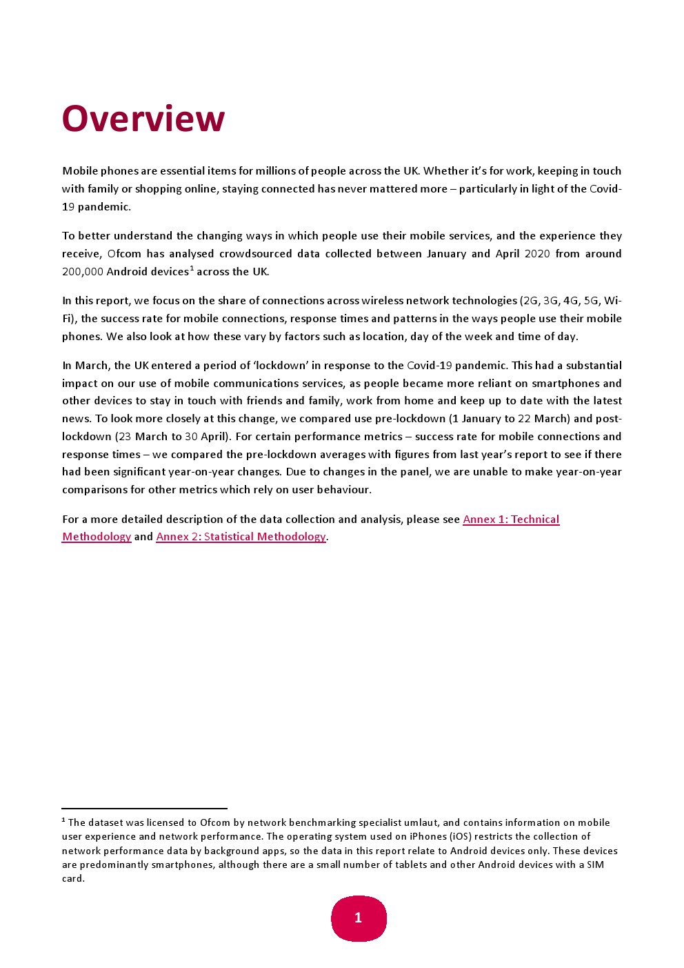 为了更好地了解人们使用移动服务的方式的变化,以及他们获得的体验,Ofcom分析了2020年1月至4月英国约20万台Android设备上收集的数据。