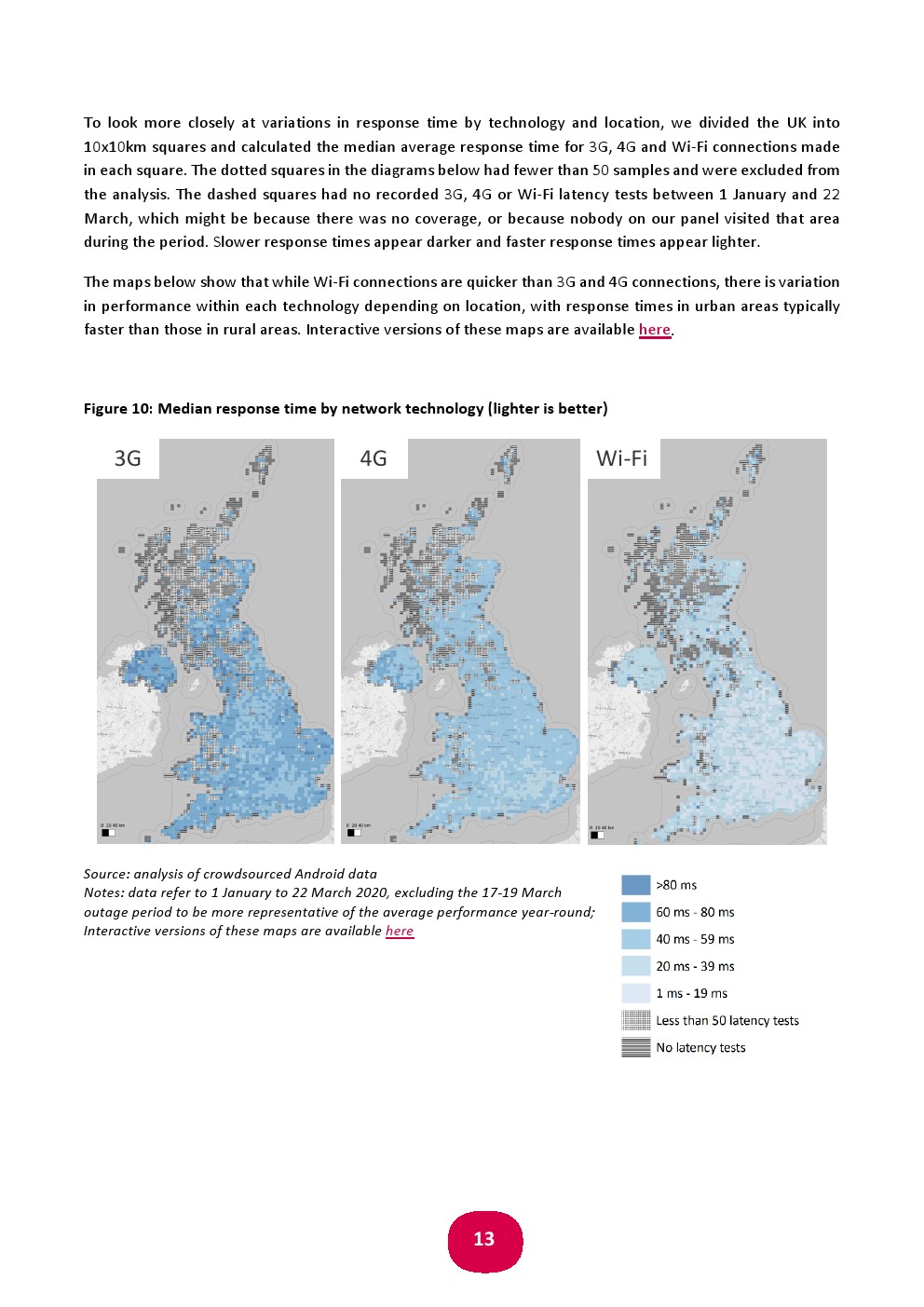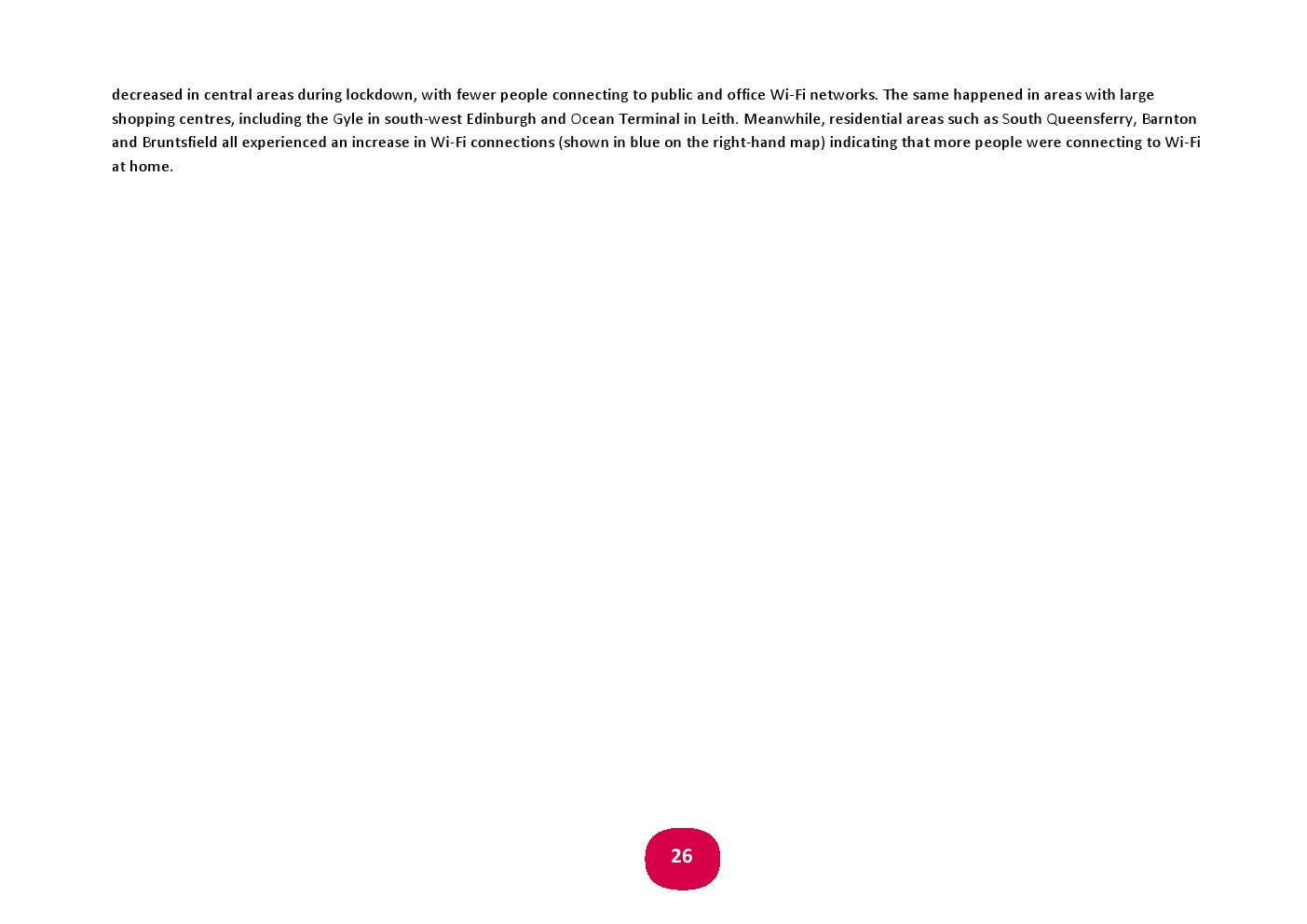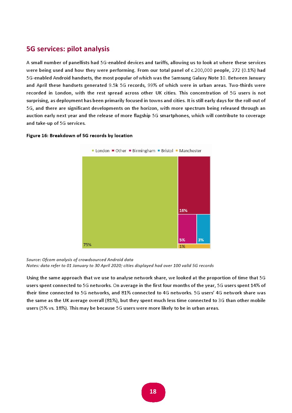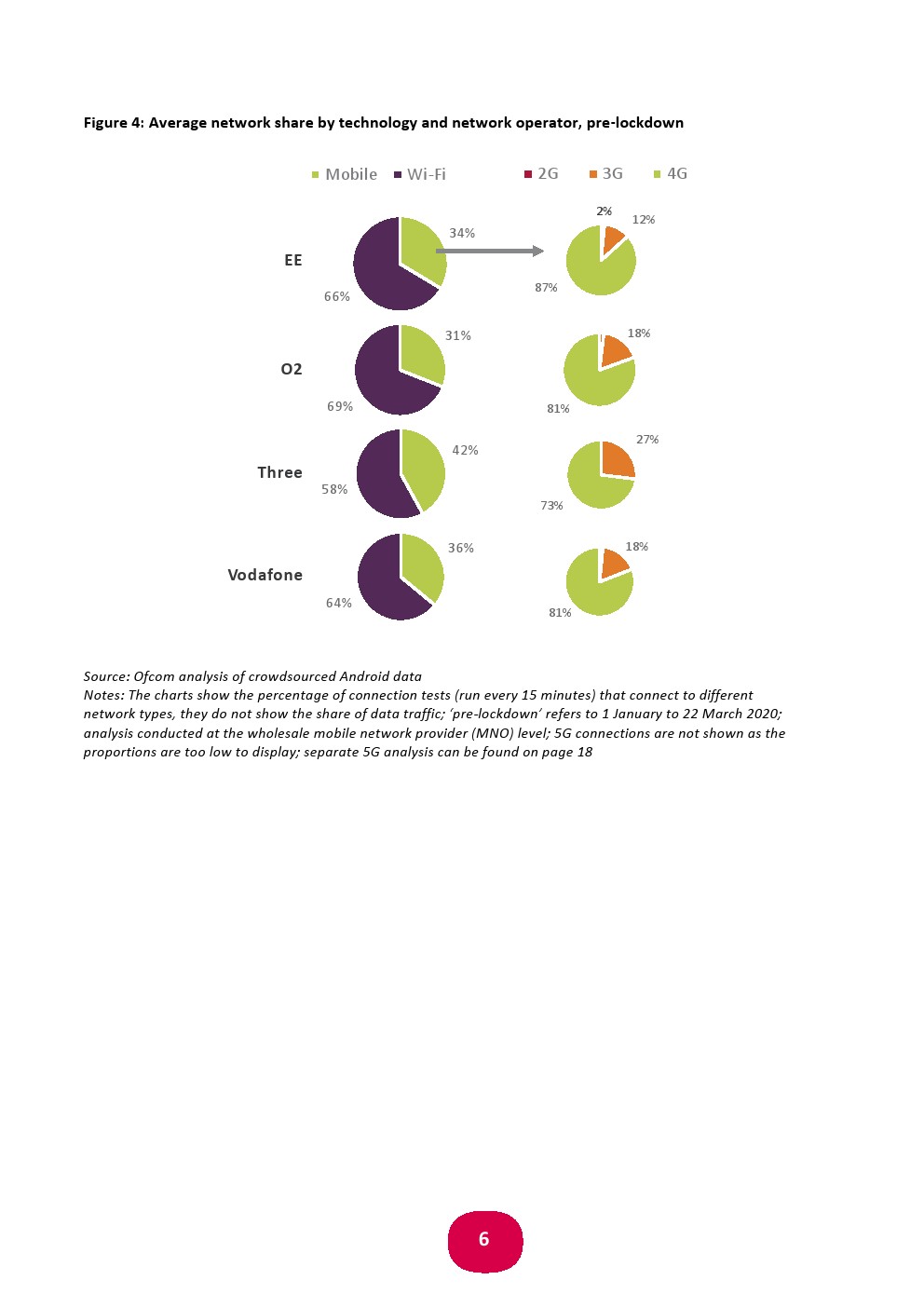 - 封锁还导致英国首都城市中心地区的移动设备使用量大幅减少,因为人们不再通勤到这些地区,转而在家工作。这些人更可能通过Wi-Fi连接到网络。